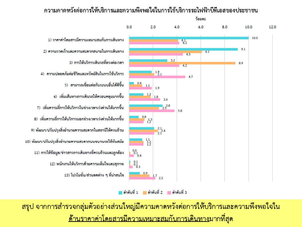 Homeผลการสำรวจความพึงพอใจปี พ.ศ. 2566ช่วงหมอชิต-สะพานใหม่-คูคต ช่วงหมอชิต-สะพานใหม่-คูคต ช่วงสะพานใหม่-คูคต ผลการสำรวจความพึงพอใจ ระหว่างเดือนกรกฎาคม-ธันวาคม พ.ศ. 2566 จากกลุ่มตัวอย่างผู้ใช้บริการโครงการรถไฟฟ้าสายสีเขียว ช่วงหมอชิต-สะพานใหม่-คูคต จำนวนทั้งสิ้น 1,010 คน โดยผู้ให้สัมภาษณ์ มีความพึงพอใจในระดับมาก (คิดเป็นร้อยละ 80.6) ต่อการดำเนินงานของโครงการฯ ระยะดำเนินการ โดยใช้ ผลการสำรวจความพึงพอใจ ด้านการรับรู้ข่าวสารและความคิดเห็นของประชาชนที่มีต่อโครงการ
