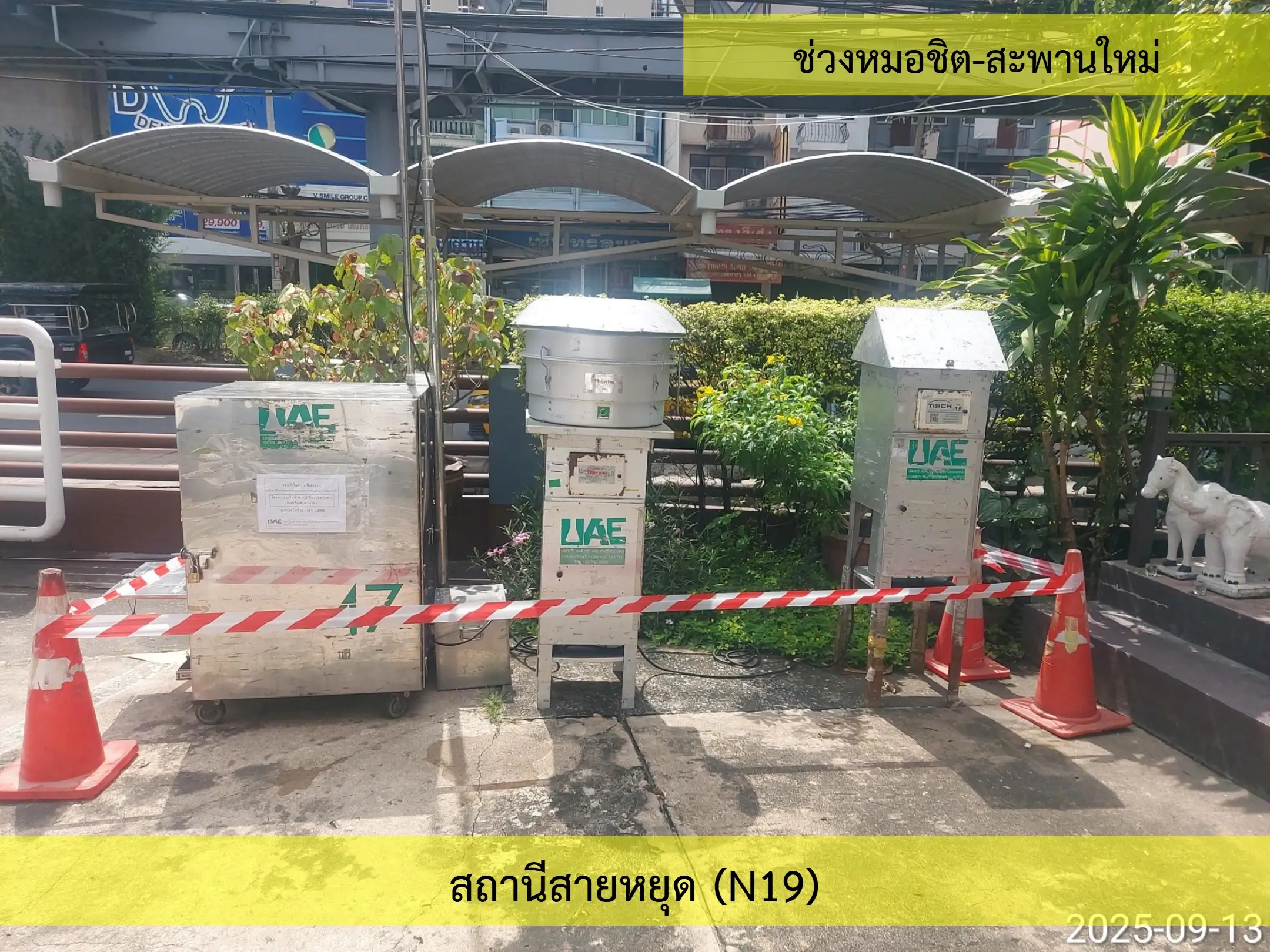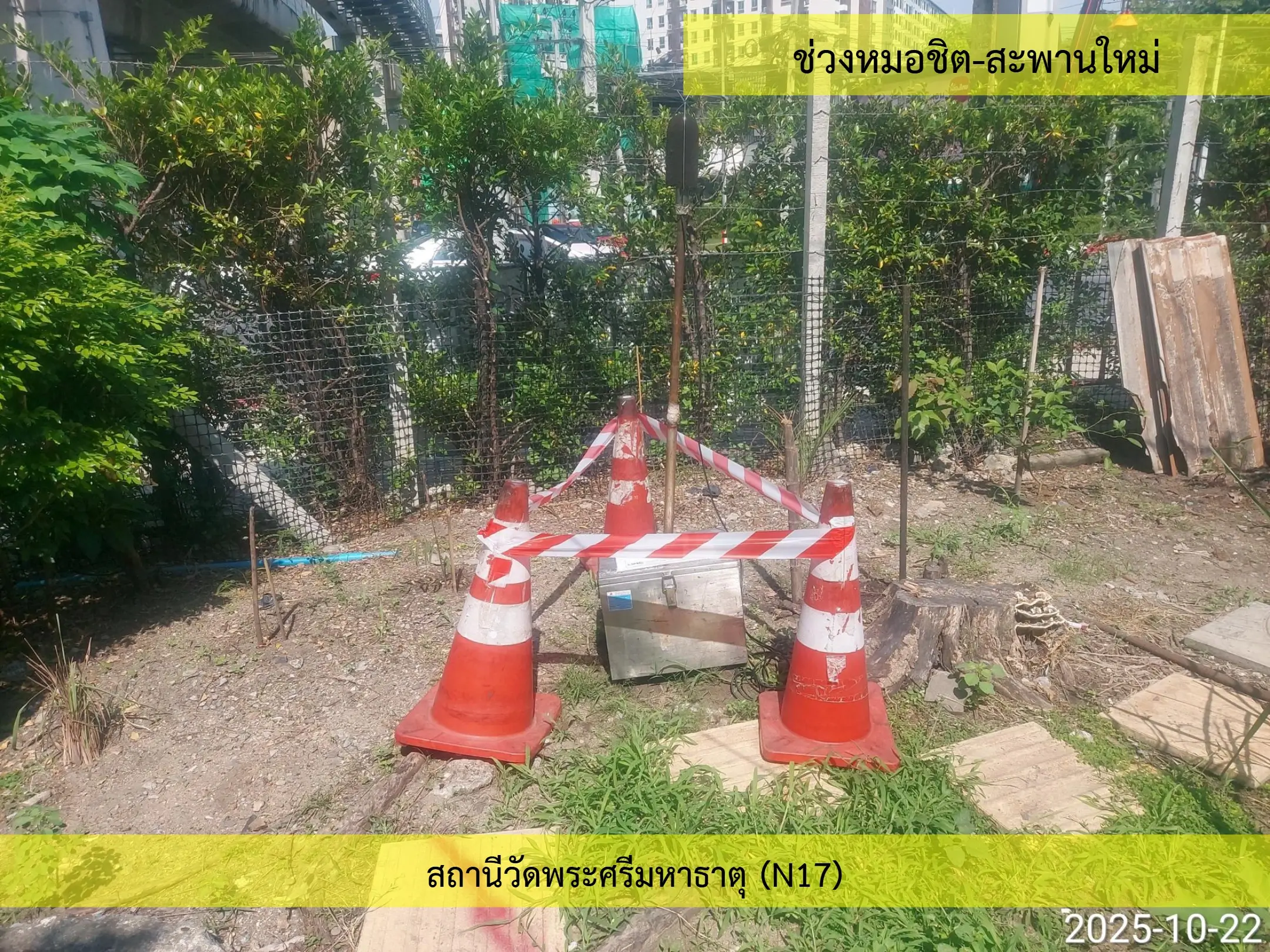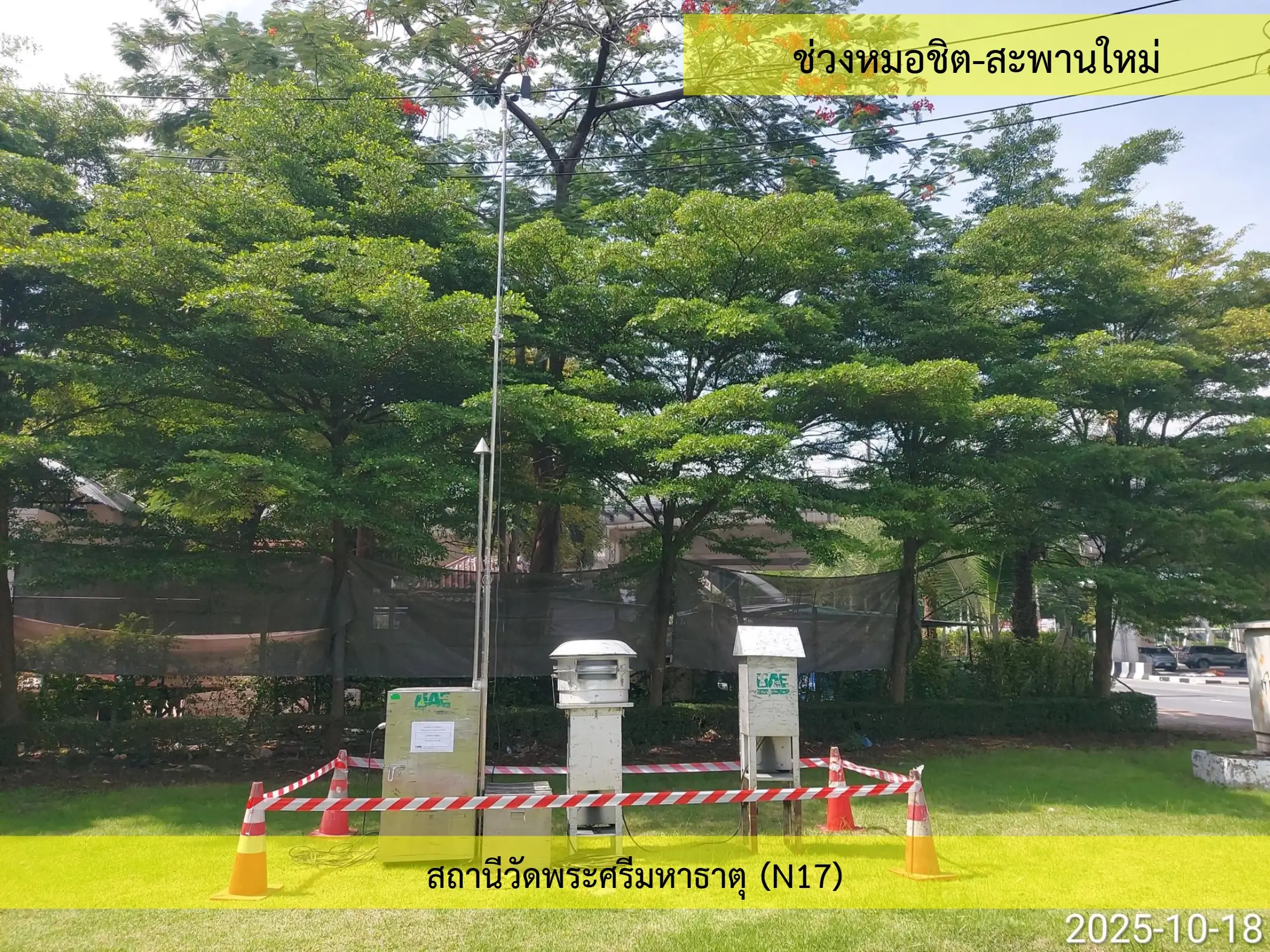 มาตรการกำหนดให้ติดตามตรวจสอบผลกระทบสิ่งแวดล้อม ประกอบด้วย คุณภาพอากาศในบรรยากาศ ตรวจสอบ ปีละ 2 ครั้ง จำนวน 3 สถานี ได้แก่ โรงเรียนหอวัง วิทยาลัยพุทธศาสตร์ และปรัชญา มหาวิทยาลัยราชภัฏพระนคร และสถานีวัดพระศรีมหาธาตุ (N17) และติดตามตรวจสอบทุก 3 ปี ปีละ 4 ครั้ง จำนวน 3 สถานี ได้แก่ สถานีรัชโยธิน (N11) สถานีสายหยุด (N19) และสถานีสะพานใหม่ (N20) สำหรับระดับเสียงโดยทั่วไป ติดตามตรวจสอบ ปีละ 2 ครั้ง จำนวน 5 สถานี คือ โรงเรียนหอวัง วิทยาลัยพุทธศาสตร์ และปรัชญา มหาวิทยาลัยราชภัฏพระนคร โรงเรียนไทยนิยมสงเคราะห์ สถาบันพัฒนาสุขภาวะเขตเมือง (เดิมชื่อ รพ.ส่งเสริมสุขภาพ สำนักงานบางเขน) และสถานีวัดพระศรีมหาธาตุ (N17) และติดตามตรวจสอบทุก 3 ปี ปีละ 4 ครั้ง จำนวน 3 สถานี ได้แก่ สถานีรัชโยธิน (N11) สถานีสายหยุด (N19) และสถานีสะพานใหม่ (N20) การติดตามตรวจสอบสาธารณสุข อาชีวอนามัยและความปลอดภัย ปีละ 1 ครั้ง โดยในช่วงเดือนกรกฎาคม-ธันวาคม พ.ศ. 2568 ทางโครงการได้ปฏิบัติตามข้อกำหนดในรายงานฯ ที่ได้กำหนดไว้