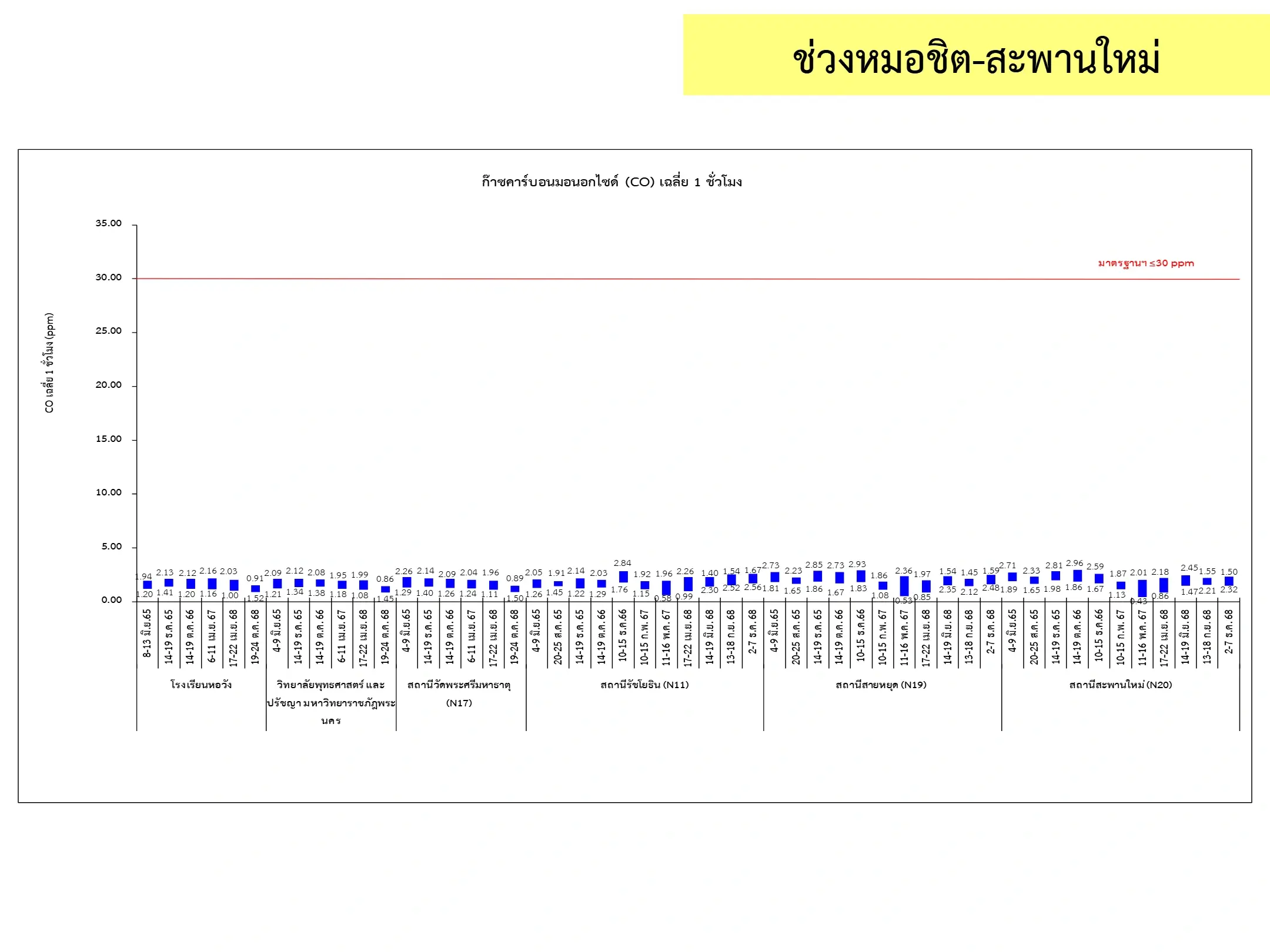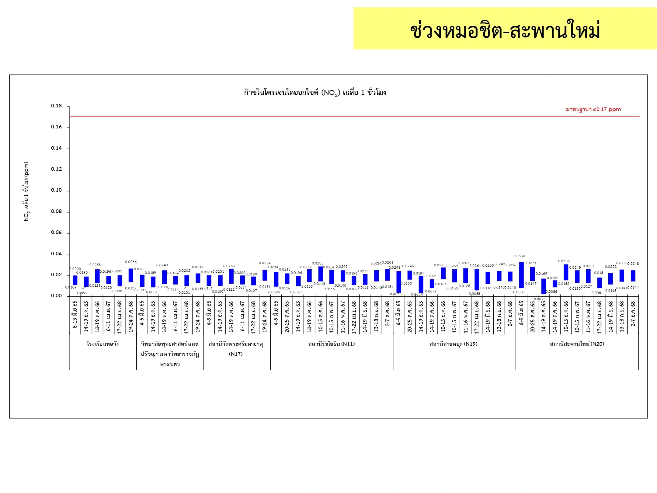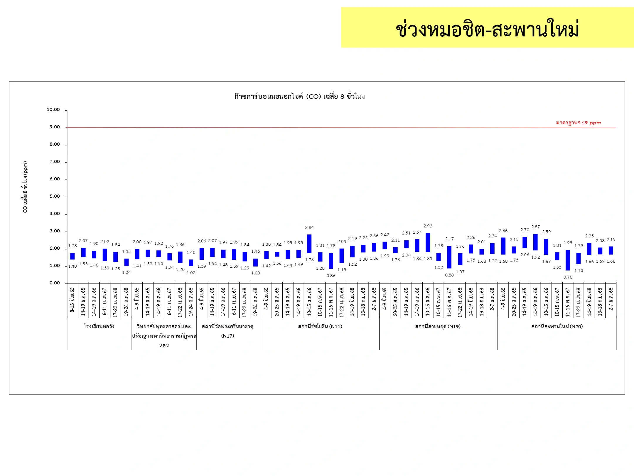 มาตรการกำหนดให้ติดตามตรวจสอบผลกระทบสิ่งแวดล้อม ประกอบด้วย คุณภาพอากาศในบรรยากาศ ตรวจสอบ ปีละ 2 ครั้ง จำนวน 3 สถานี ได้แก่ โรงเรียนหอวัง วิทยาลัยพุทธศาสตร์ และปรัชญา มหาวิทยาลัยราชภัฏพระนคร และสถานีวัดพระศรีมหาธาตุ (N17) และติดตามตรวจสอบทุก 3 ปี ปีละ 4 ครั้ง จำนวน 3 สถานี ได้แก่ สถานีรัชโยธิน (N11) สถานีสายหยุด (N19) และสถานีสะพานใหม่ (N20) สำหรับระดับเสียงโดยทั่วไป ติดตามตรวจสอบ ปีละ 2 ครั้ง จำนวน 5 สถานี คือ โรงเรียนหอวัง วิทยาลัยพุทธศาสตร์ และปรัชญา มหาวิทยาลัยราชภัฏพระนคร โรงเรียนไทยนิยมสงเคราะห์ สถาบันพัฒนาสุขภาวะเขตเมือง (เดิมชื่อ รพ.ส่งเสริมสุขภาพ สำนักงานบางเขน) และสถานีวัดพระศรีมหาธาตุ (N17) และติดตามตรวจสอบทุก 3 ปี ปีละ 4 ครั้ง จำนวน 3 สถานี ได้แก่ สถานีรัชโยธิน (N11) สถานีสายหยุด (N19) และสถานีสะพานใหม่ (N20) การติดตามตรวจสอบสาธารณสุข อาชีวอนามัยและความปลอดภัย ปีละ 1 ครั้ง โดยในช่วงเดือนกรกฎาคม-ธันวาคม พ.ศ. 2568 ทางโครงการได้ปฏิบัติตามข้อกำหนดในรายงานฯ ที่ได้กำหนดไว้