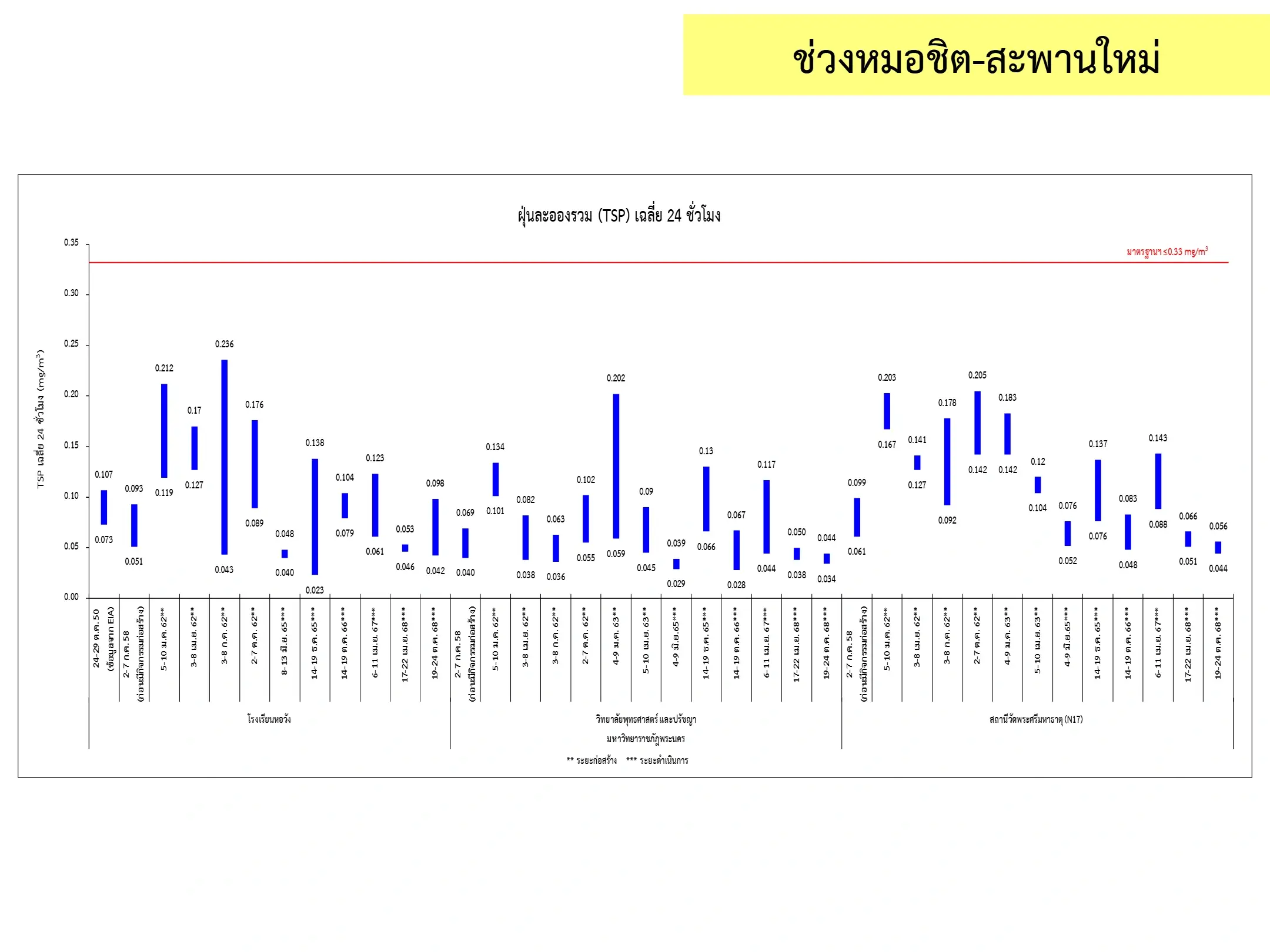 ผลการติดตามตรวจสอบคุณภาพอากาศในบรรยากาศ ได้แก่ ฝุ่นละอองขนาดไม่เกิน 10 ไมครอน ฝุ่นละอองรวม ก๊าซคาร์บอนมอนอกไซด์ ก๊าซไนโตรเจนไดออกไซด์ และก๊าซนอนมีเทน-ไฮโดรคาร์บอน ในช่วงเดือนกรกฎาคม-ธันวาคม พ.ศ. 2568 พบว่า ดัชนีคุณภาพอากาศทั้งหมด มีค่าอยู่ในมาตรฐานตามประกาศคณะกรรมการสิ่งแวดล้อมแห่งชาติ ฉบับที่ 10 (พ.ศ. 2538) เรื่อง กำหนดมาตรฐานคุณภาพอากาศในบรรยากาศทั่วไป มาตรฐานตามประกาศคณะกรรมการสิ่งแวดล้อมแห่งชาติ ฉบับที่ 24 (พ.ศ. 2547) เรื่อง กำหนดมาตรฐานคุณภาพอากาศในบรรยากาศทั่วไป และมาตรฐานตามประกาศคณะกรรมการสิ่งแวดล้อมแห่งชาติ ฉบับที่ 33 (พ.ศ. 2552) เรื่อง กำหนดมาตรฐานค่าก๊าซไนโตรเจนไดออกไซด์ในบรรยากาศโดยทั่วไป