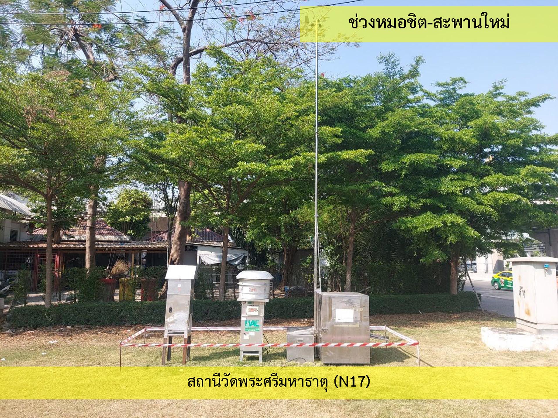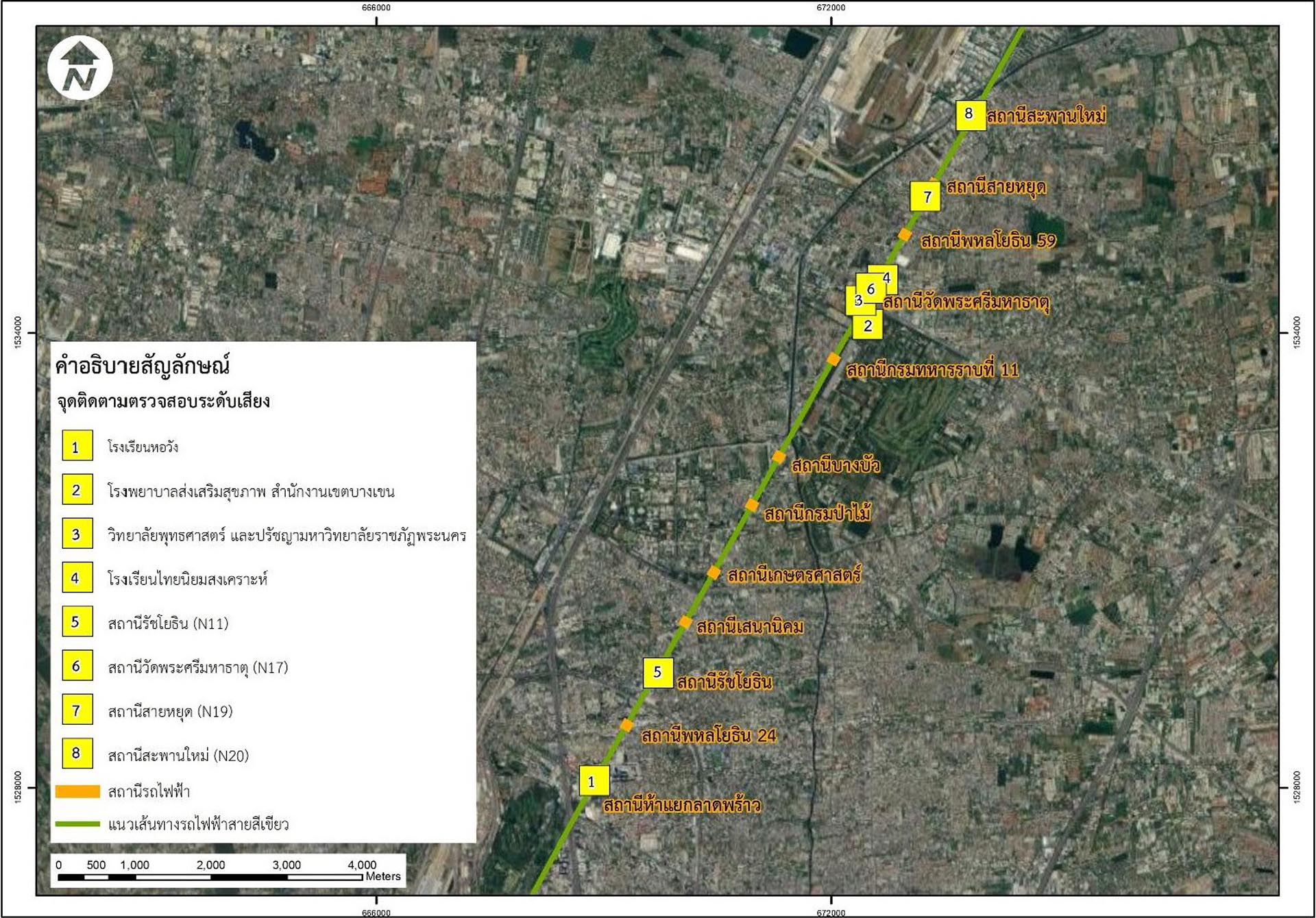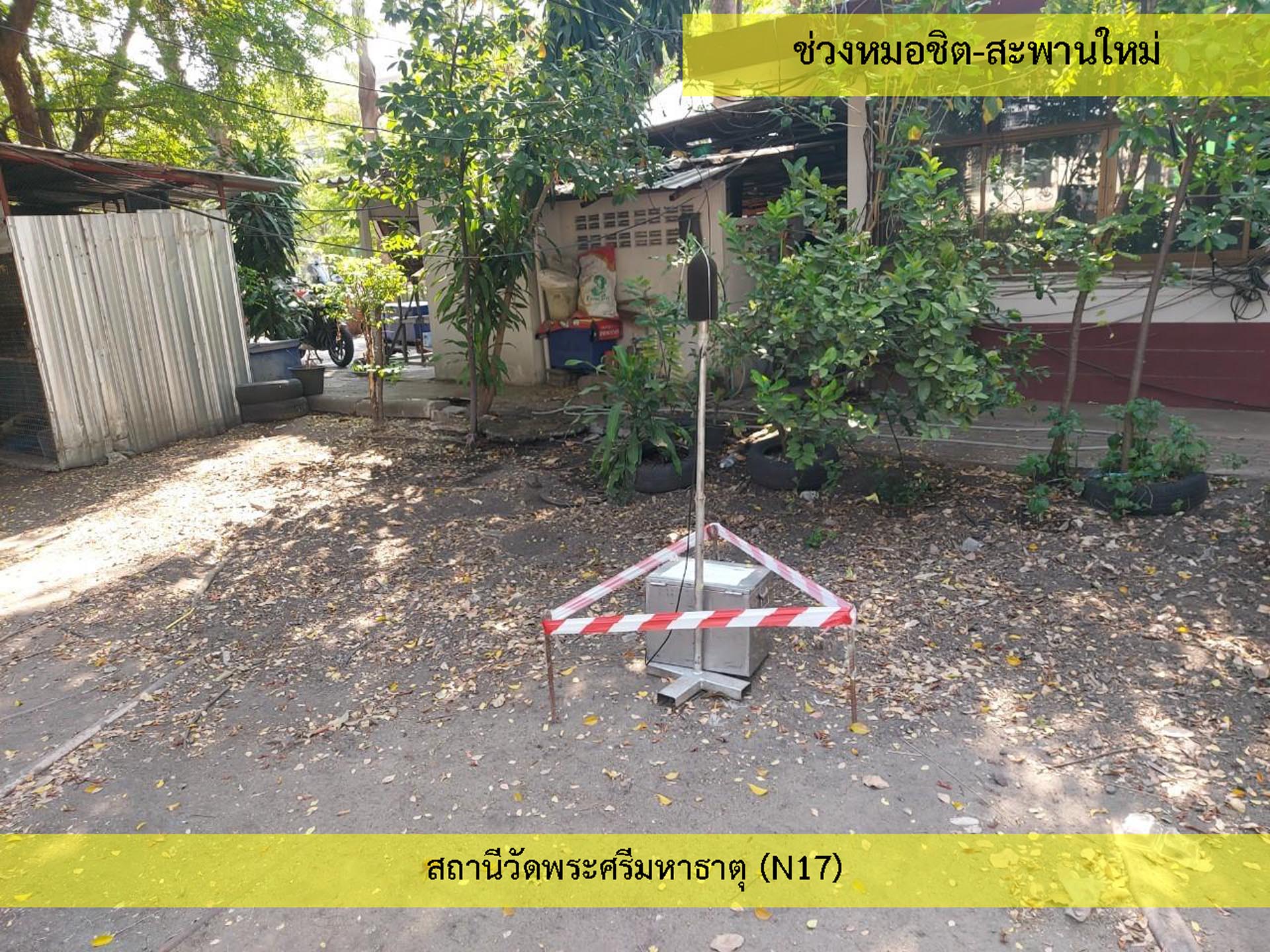 มาตรการกำหนดให้ติดตามตรวจสอบผลกระทบสิ่งแวดล้อม ประกอบด้วย คุณภาพอากาศในบรรยากาศ ตรวจสอบ ปีละ 2 ครั้ง จำนวน 3 สถานี ได้แก่ โรงเรียนหอวัง วิทยาลัยพุทธศาสตร์ และปรัชญา มหาวิทยาลัยราชภัฏพระนคร และสถานีวัดพระศรีมหาธาตุ (N17) และติดตามตรวจสอบทุก 3 ปี ปีละ 4 ครั้ง จำนวน 3 สถานี ได้แก่ สถานีรัชโยธิน (N11) สถานีสายหยุด (N19) และสถานีสะพานใหม่ (N20) สำหรับระดับเสียงโดยทั่วไป ติดตามตรวจสอบ ปีละ 2 ครั้ง จำนวน 5 สถานี คือ โรงเรียนหอวัง วิทยาลัยพุทธศาสตร์ และปรัชญา มหาวิทยาลัยราชภัฏพระนคร โรงเรียนไทยนิยมสงเคราะห์ สถาบันพัฒนาสุขภาวะเขตเมือง (เดิมชื่อ รพ.ส่งเสริมสุขภาพ สำนักงานบางเขน) และสถานีวัดพระศรีมหาธาตุ (N17) และติดตามตรวจสอบทุก 3 ปี ปีละ 4 ครั้ง จำนวน 3 สถานี ได้แก่ สถานีรัชโยธิน (N11) สถานีสายหยุด (N19) และสถานีสะพานใหม่ (N20) การติดตามตรวจสอบสาธารณสุข อาชีวอนามัยและความปลอดภัย ปีละ 1 ครั้ง โดยในช่วงเดือนมกราคม-มิถุนายน พ.ศ. 2567 ทางโครงการได้ปฏิบัติตามข้อกำหนดในรายงานฯ ที่ได้กำหนดไว้