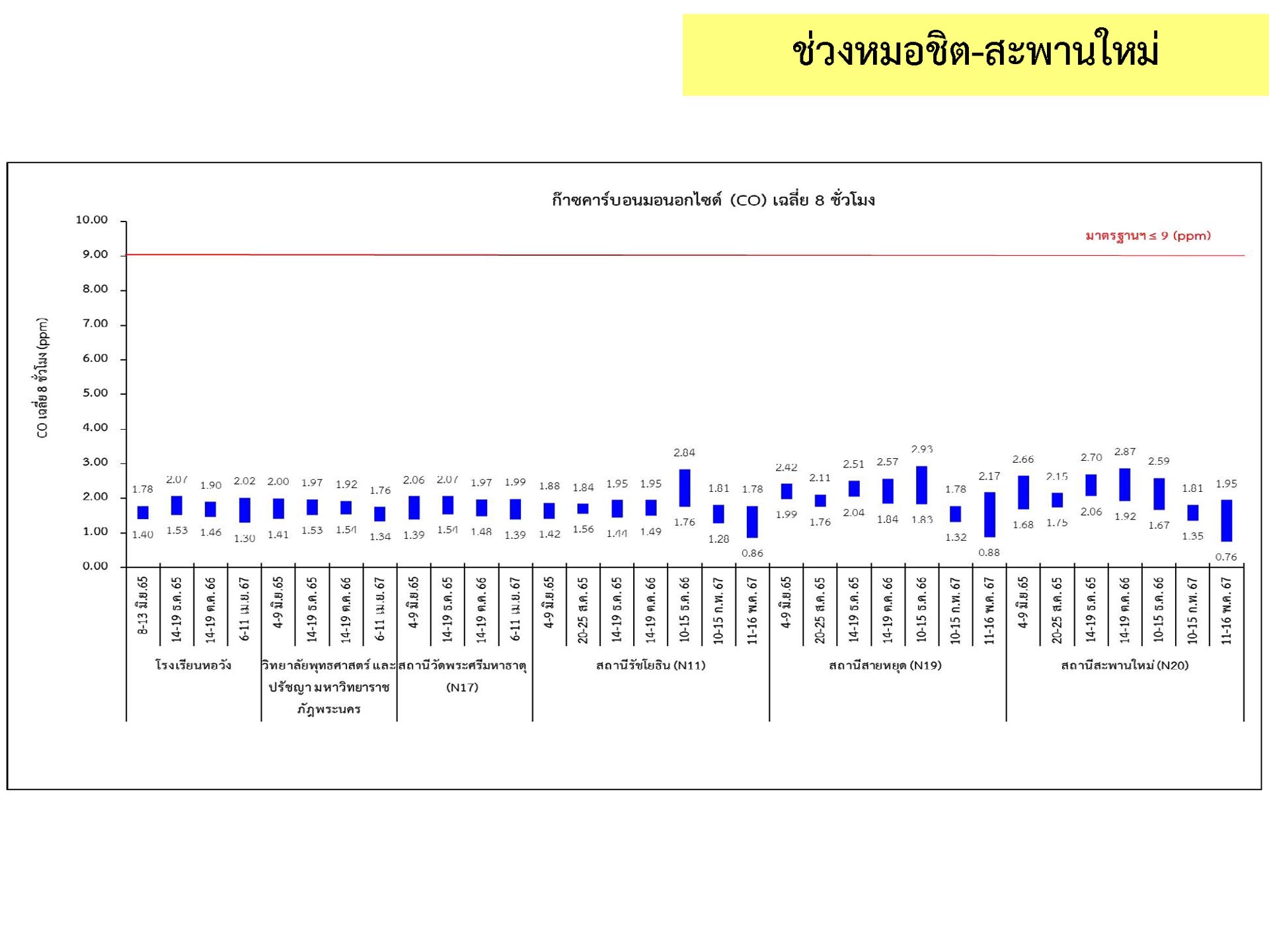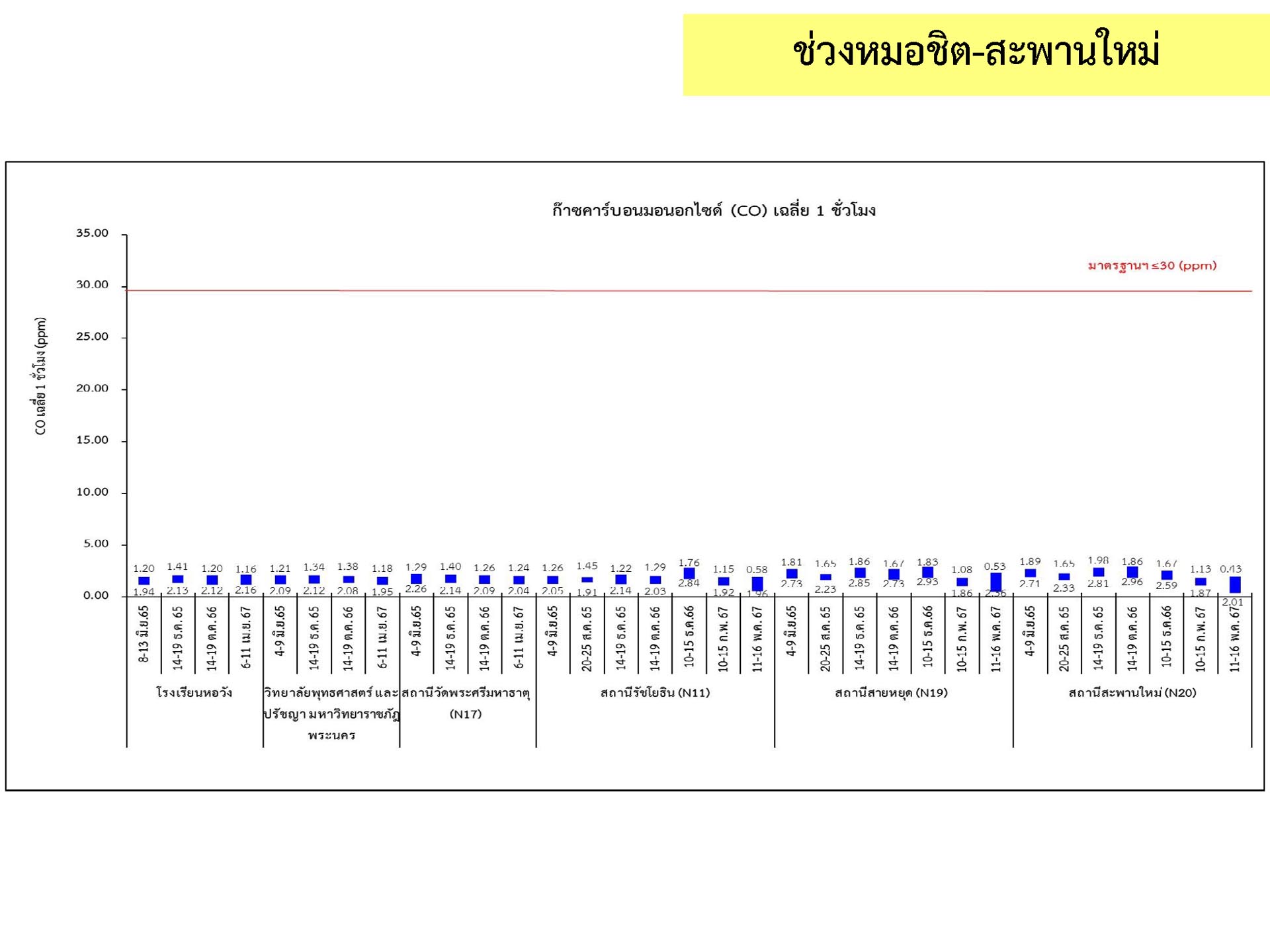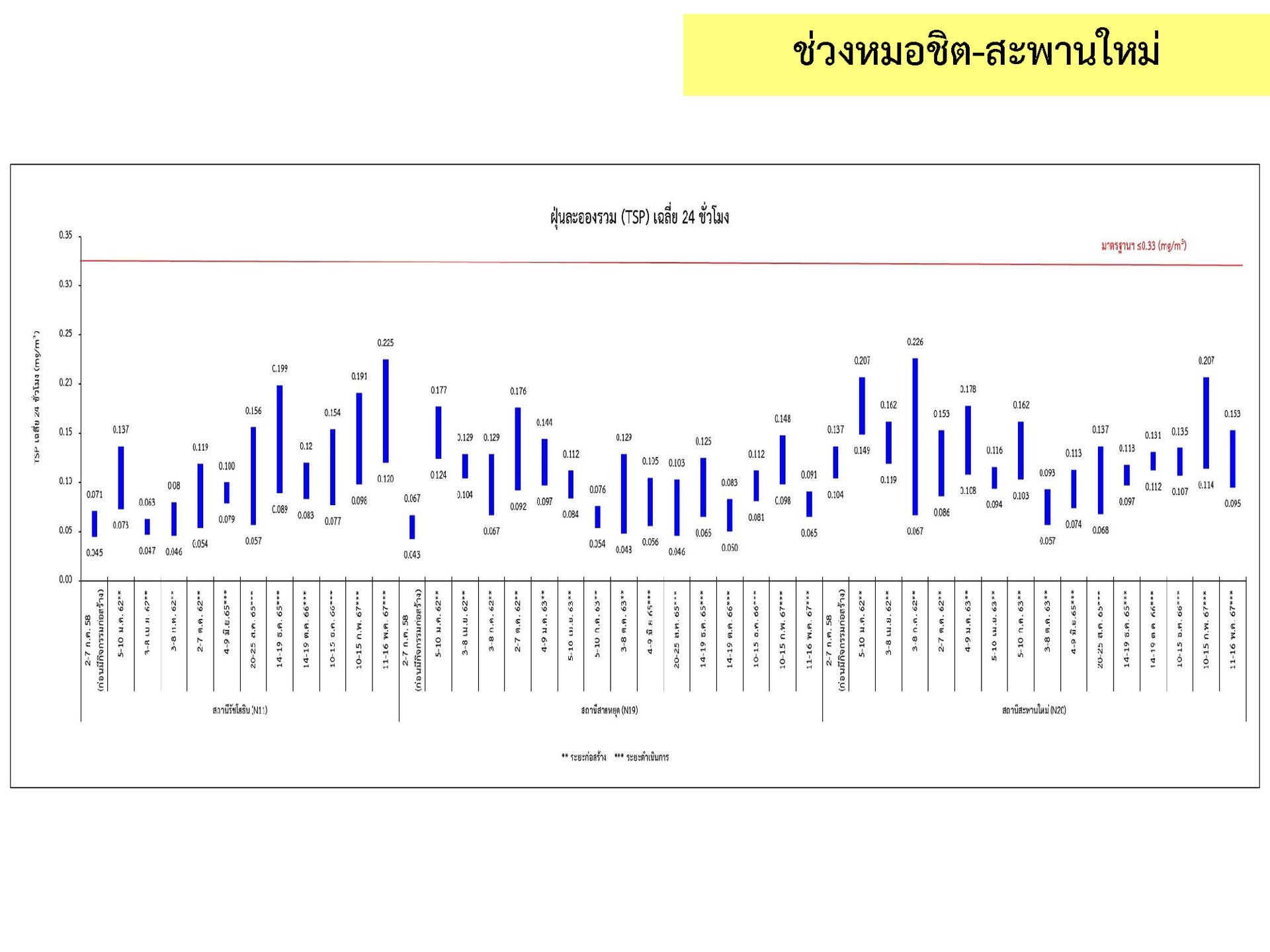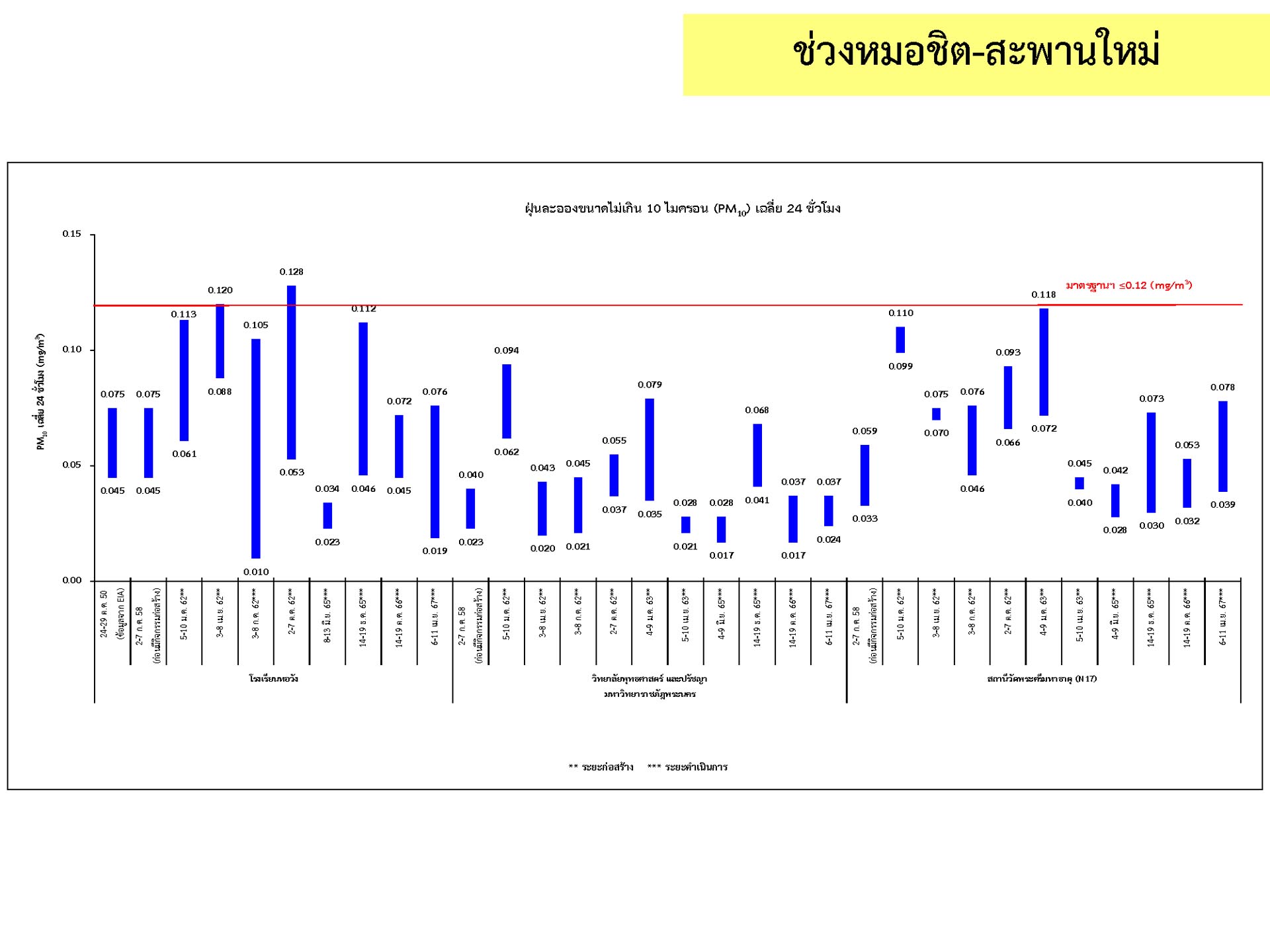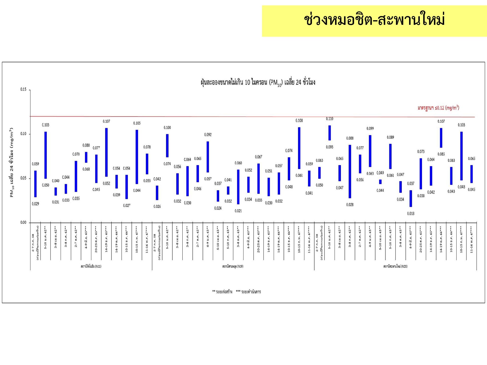 ดูดซับเสียงจากการจราจร ส่วนโรงเรียนไทยนิยมสงเคราะห์ เนื่องจากจุดติดตามตรวจสอบระดับเสียงตั้งอยู่ภายในบริเวณโรงเรียนไทยนิยมสังเคราะห์ ซึ่งอยู่ในช่วงที่มีกิจกรรมการปรับปรุงอาคารภายในโรงเรียน จึงทำให้ระดับเสียงเฉลี่ย 24 ชั่วโมงมีค่าเกินมาตรฐาน ขณะที่ระดับเสียงสูงสุด มีค่าอยู่ในมาตรฐานระดับเสียงโดยทั่วไป ตามประกาศคณะกรรมการสิ่งแวดล้อมแห่งชาติ ฉบับที่ 15 (พ.ศ. 2540) ที่กำหนดให้ระดับเสียงสูงสุด มีค่าได้ไม่เกิน 115 เดซิเบลเอ สำหรับระดับเสียงเฉลี่ย 1 ชั่วโมง ระดับเสียงเปอร์เซ็นไทล์ที่ 90 และระดับเสียงเฉลี่ยกลางวัน-กลางคืน ยังไม่มีมาตรฐานกำหนด