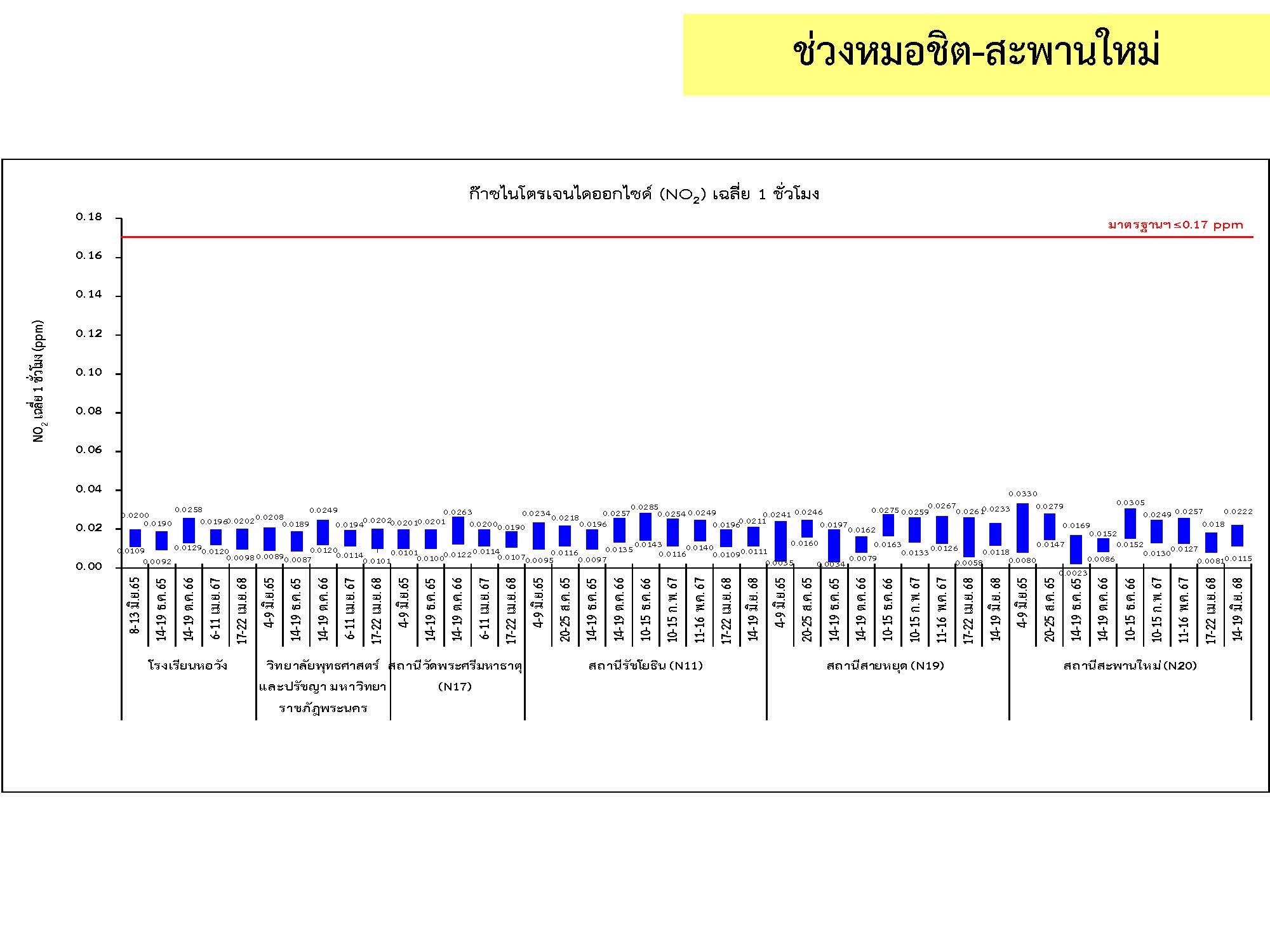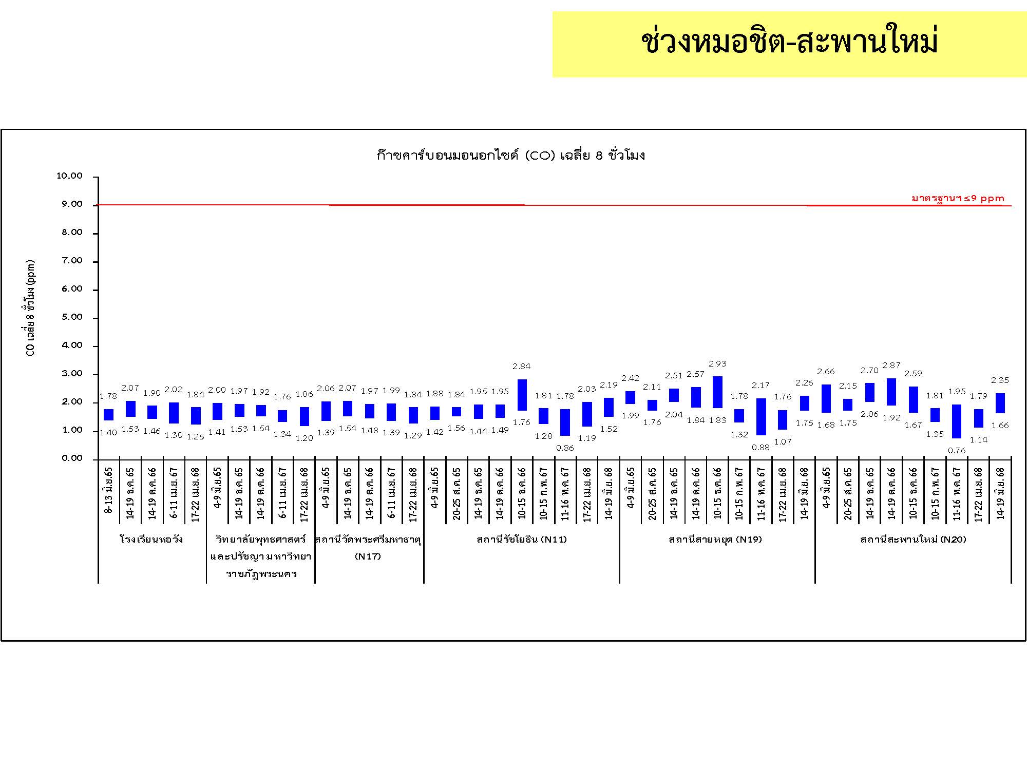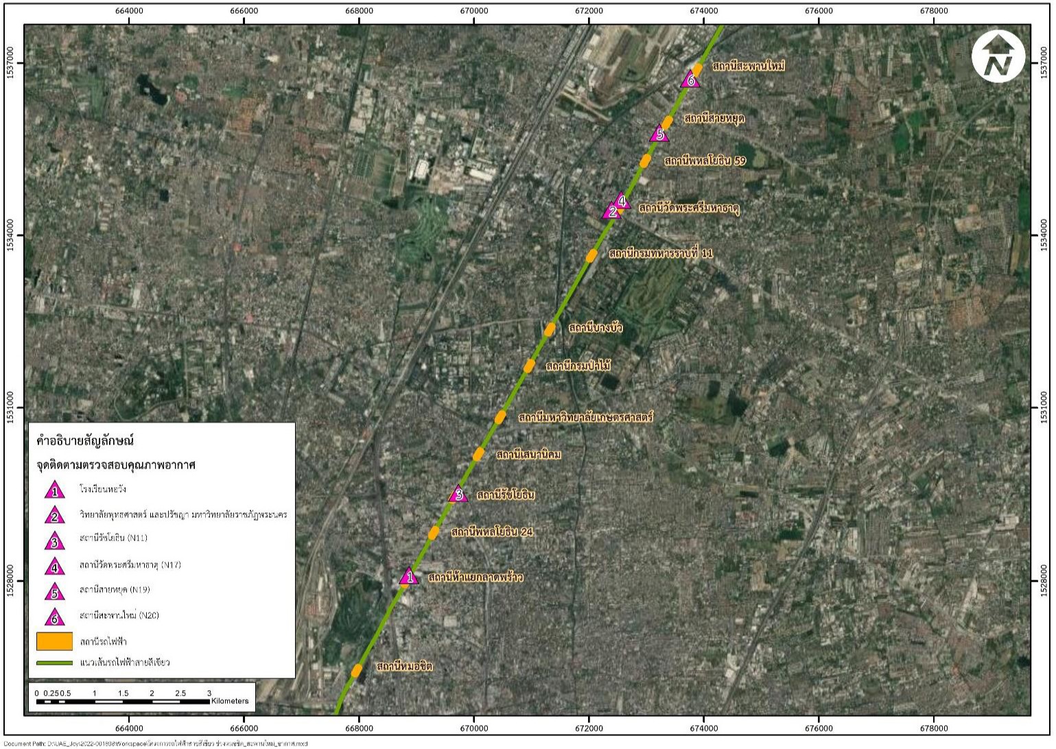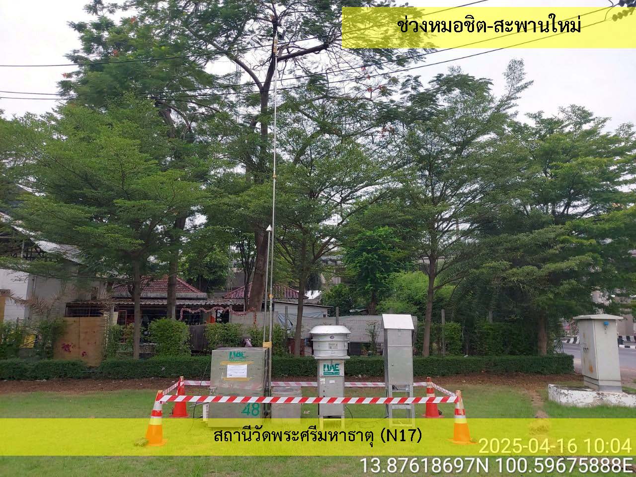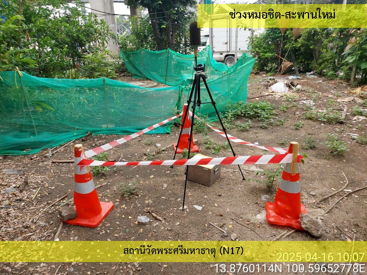 มาตรการกำหนดให้ติดตามตรวจสอบผลกระทบสิ่งแวดล้อม ประกอบด้วย คุณภาพอากาศในบรรยากาศ ตรวจสอบ ปีละ 2 ครั้ง จำนวน 3 สถานี ได้แก่ โรงเรียนหอวัง วิทยาลัยพุทธศาสตร์ และปรัชญา มหาวิทยาลัยราชภัฏพระนคร และสถานีวัดพระศรีมหาธาตุ (N17) และติดตามตรวจสอบทุก 3 ปี ปีละ 4 ครั้ง จำนวน 3 สถานี ได้แก่ สถานีรัชโยธิน (N11) สถานีสายหยุด (N19) และสถานีสะพานใหม่ (N20) สำหรับระดับเสียงโดยทั่วไป ติดตามตรวจสอบ ปีละ 2 ครั้ง จำนวน 5 สถานี คือ โรงเรียนหอวัง วิทยาลัยพุทธศาสตร์ และปรัชญา มหาวิทยาลัยราชภัฏพระนคร โรงเรียนไทยนิยมสงเคราะห์ สถาบันพัฒนาสุขภาวะเขตเมือง (เดิมชื่อ รพ.ส่งเสริมสุขภาพ สำนักงานบางเขน) และสถานีวัดพระศรีมหาธาตุ (N17) และติดตามตรวจสอบทุก 3 ปี ปีละ 4 ครั้ง จำนวน 3 สถานี ได้แก่ สถานีรัชโยธิน (N11) สถานีสายหยุด (N19) และสถานีสะพานใหม่ (N20) การติดตามตรวจสอบสาธารณสุข อาชีวอนามัยและความปลอดภัย ปีละ 1 ครั้ง โดยในช่วงเดือนมกราคม-มิถุนายน พ.ศ. 2568 ทางโครงการได้ปฏิบัติตามข้อกำหนดในรายงานฯ ที่ได้กำหนดไว้