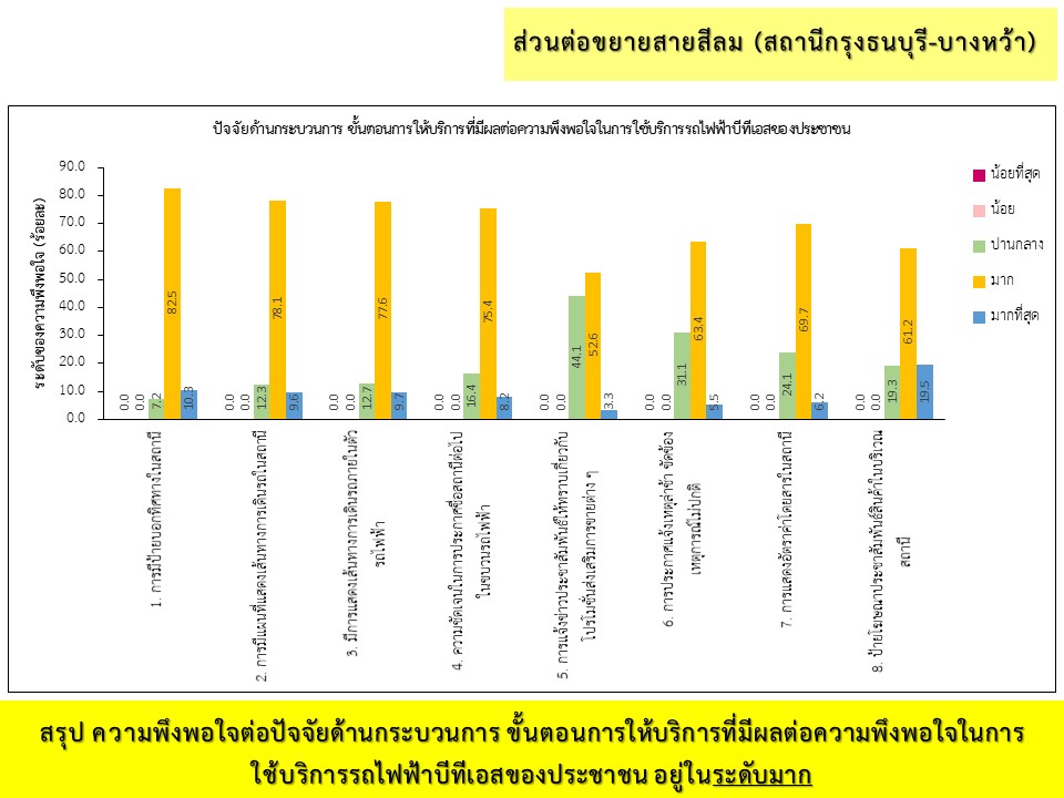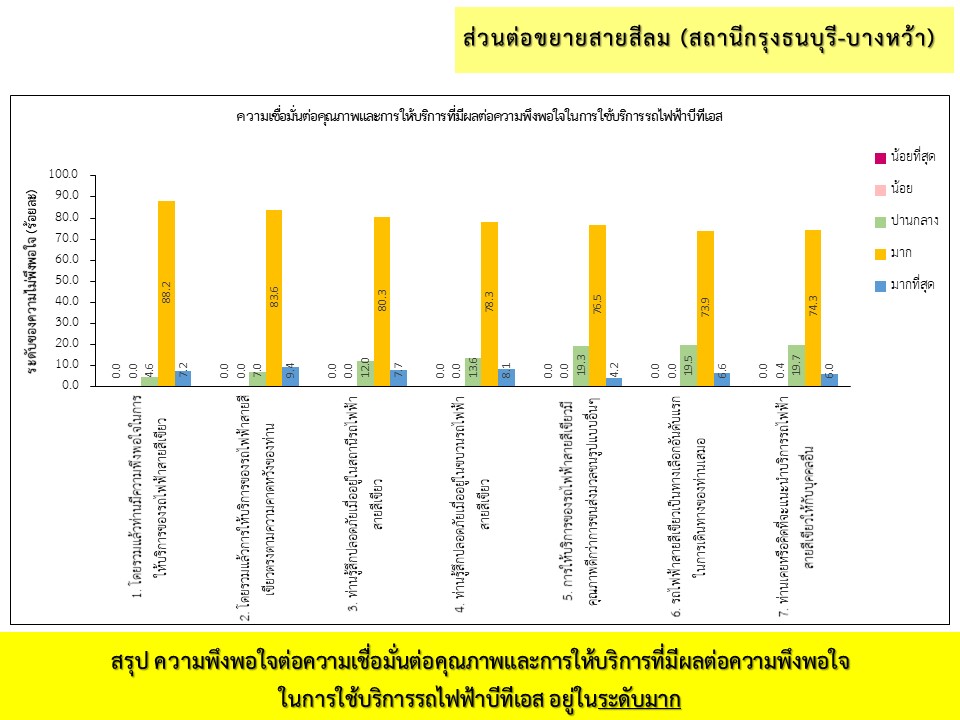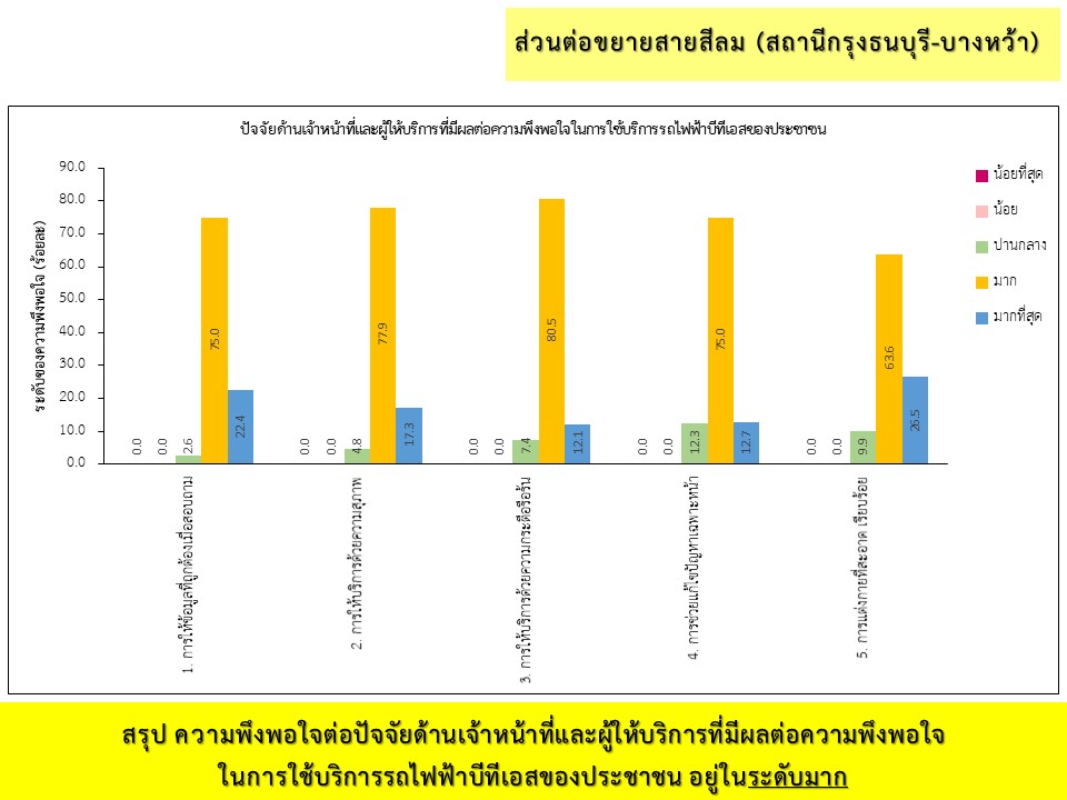 ผลการสำรวจความพึงพอใจ ระหว่างเดือนกรกฎาคม-ธันวาคม พ.ศ. 2565 จากกลุ่มตัวอย่างผู้ใช้บริการโครงการระบบขนส่งมวลชนกรุงเทพมหานคร ส่วนต่อขยายสาย