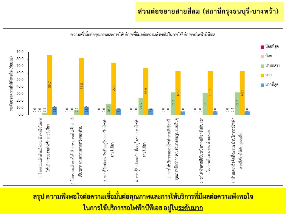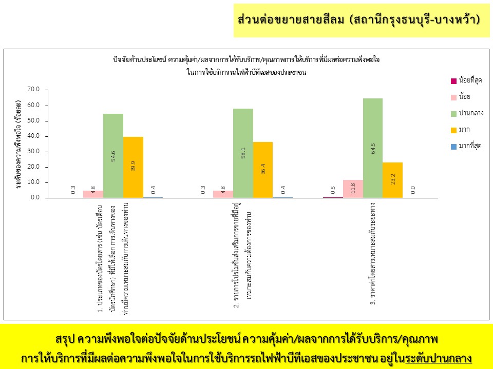 ผลการสำรวจความพึงพอใจ ระหว่างเดือนมกราคม-มิถุนายน พ.ศ. 2565 จากกลุ่มตัวอย่างผู้ใช้บริการโครงการระบบขนส่งมวลชนกรุงเทพมหานคร ส่วนต่อขยายสาย