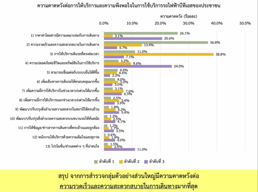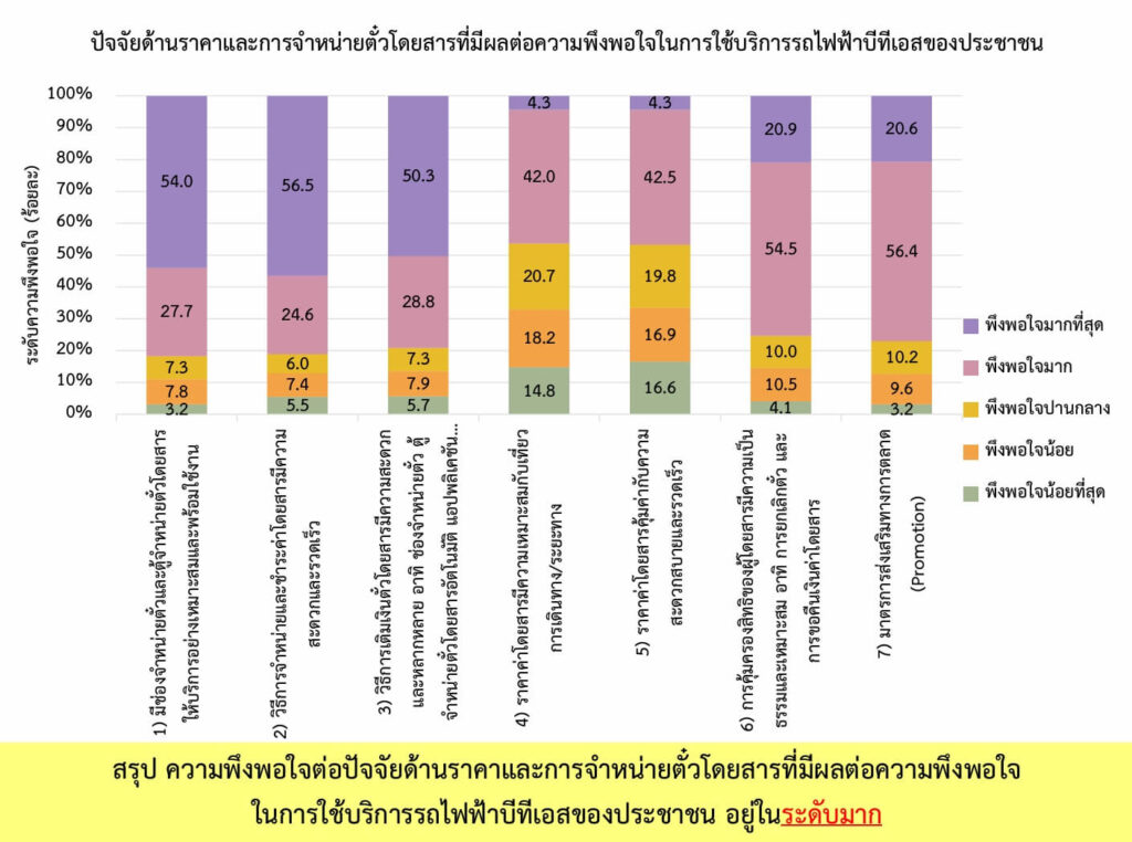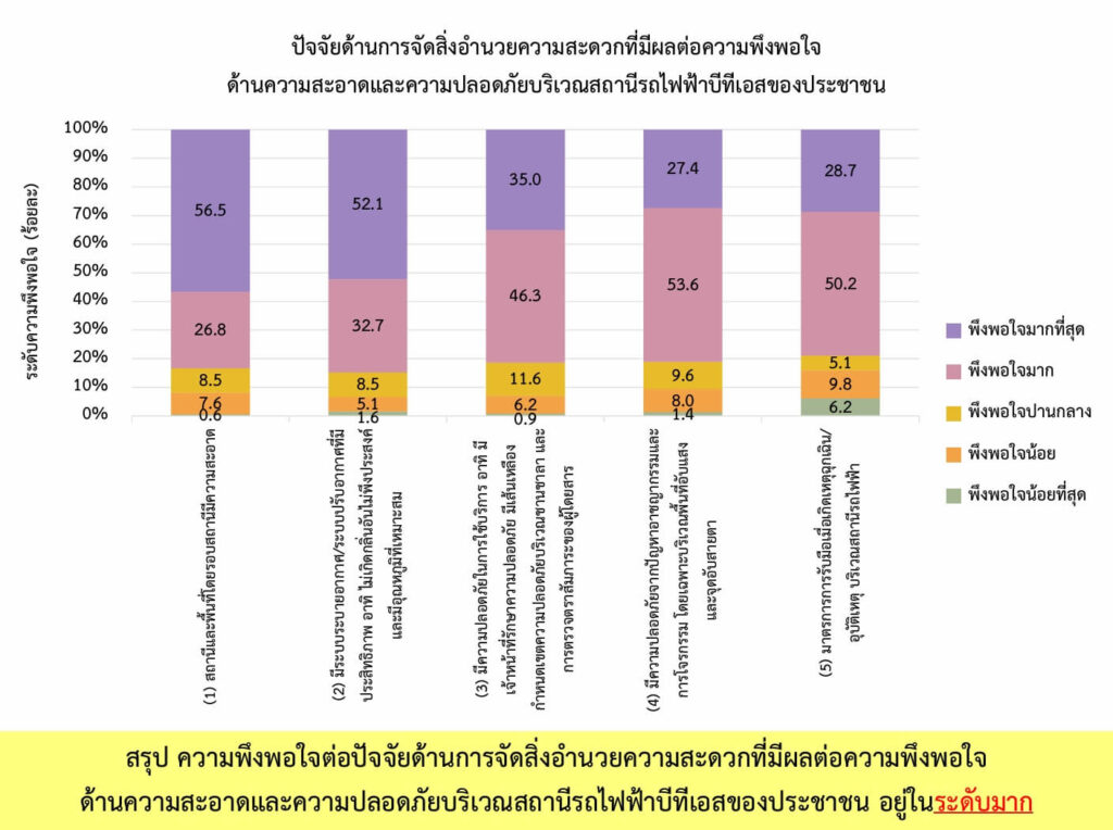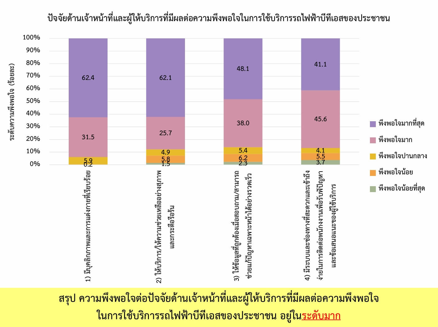 ผลการสำรวจความพึงพอใจ ได้ดำเนินการสำรวจพร้อมสรุปผลแสดงในรายงานฉบับเดือนมกราคม-มิถุนายน พ.ศ. 2568 เรียบร้อยแล้ว พบว่า จากกลุ่มตัวอย่างผู้ใช้บริการโครงการระบบขนส่งมวลชนกรุงเทพมหานคร ส่วนต่อขยายสายสีลม จำนวนทั้งสิ้น 961 คน โดยผู้ให้สัมภาษณ์ มีความพึงพอใจในระดับมาก (คิดเป็นร้อยละ 81.0) ต่อการดำเนินงานของโครงการฯ ระยะดำเนินการ