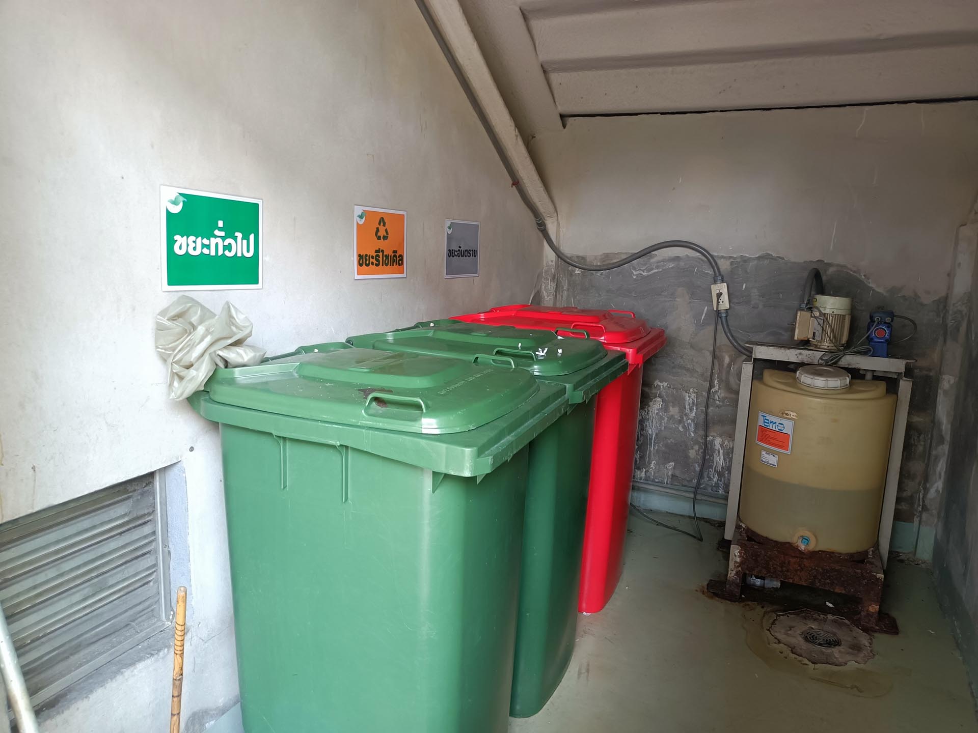 - จัดให้มีถังขยะรองรับขยะมูลฝอยไว้ตามจุดต่าง ๆ บนสถานีรถไฟฟ้าอย่างเพียงพอ