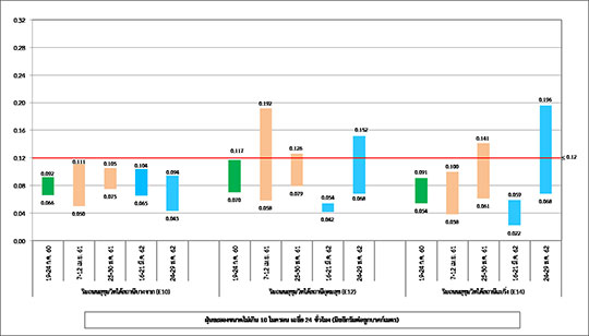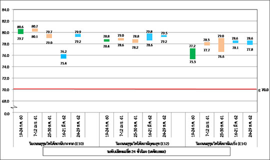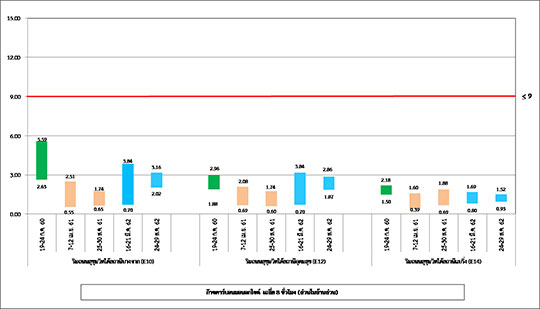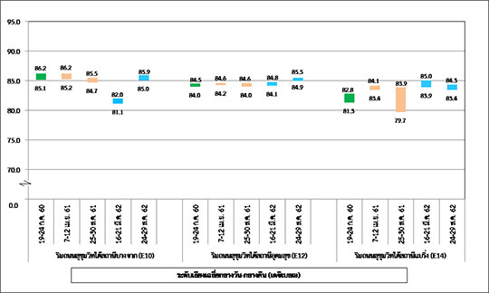 ผลการติดตามตรวจสอบระดับเสียงโดยทั่วไป ได้แก่ ระดับเสียงเฉลี่ย 1 ชั่วโมง ระดับเสียงเฉลี่ย 24 ชั่วโมง ระดับเสียงเปอร์เซ็นไทล์ที่ 90 และระดับเสียงเฉลี่ยกลางวัน-กลางคืน ระหว่างปี พ.ศ. 2560-2562 พบว่า ระดับเสียงเฉลี่ย 24 ชั่วโมง มีค่าไม่อยู่ในมาตรฐานกำหนดตามประกาศคณะกรรมการสิ่งแวดล้อมแห่งชาติ ฉบับที่ 15 (พ.ศ. 2540) เรื่อง กำหนดมาตรฐานระดับเสียงโดยทั่วไป เนื่องจากจุดติดตามตรวจสอบอยู่บริเวณริมถนนสุขุมวิทที่มีปริมาณจราจรที่หนาแน่นและติดขัดตลอดทั้งวัน สำหรับระดับเสียงเฉลี่ย 1 ชั่วโมง ระดับเสียงเปอร์เซ็นไทล์ที่ 90 และระดับเสียงเฉลี่ยกลางวัน-กลางคืน ยังไม่มีมาตรฐานกำหนด แห่งชาติ ฉบับที่ 15 (พ.ศ. 2540) เรื่อง กำหนดมาตรฐานระดับเสียงโดยทั่วไป เนื่องจากจุดติดตามตรวจสอบอยู่บริเวณริมถนนกรุงธนบุรีที่มีปริมาณจราจรที่หนาแน่นและติดขัดตลอดทั้งวัน สำหรับระดับเสียงเฉลี่ย 1 ชั่วโมง ระดับเสียงเปอร์เซ็นไทล์ที่ 90 และระดับเสียงเฉลี่ยกลางวัน-กลางคืน ยังไม่มีมาตรฐานกำหนด