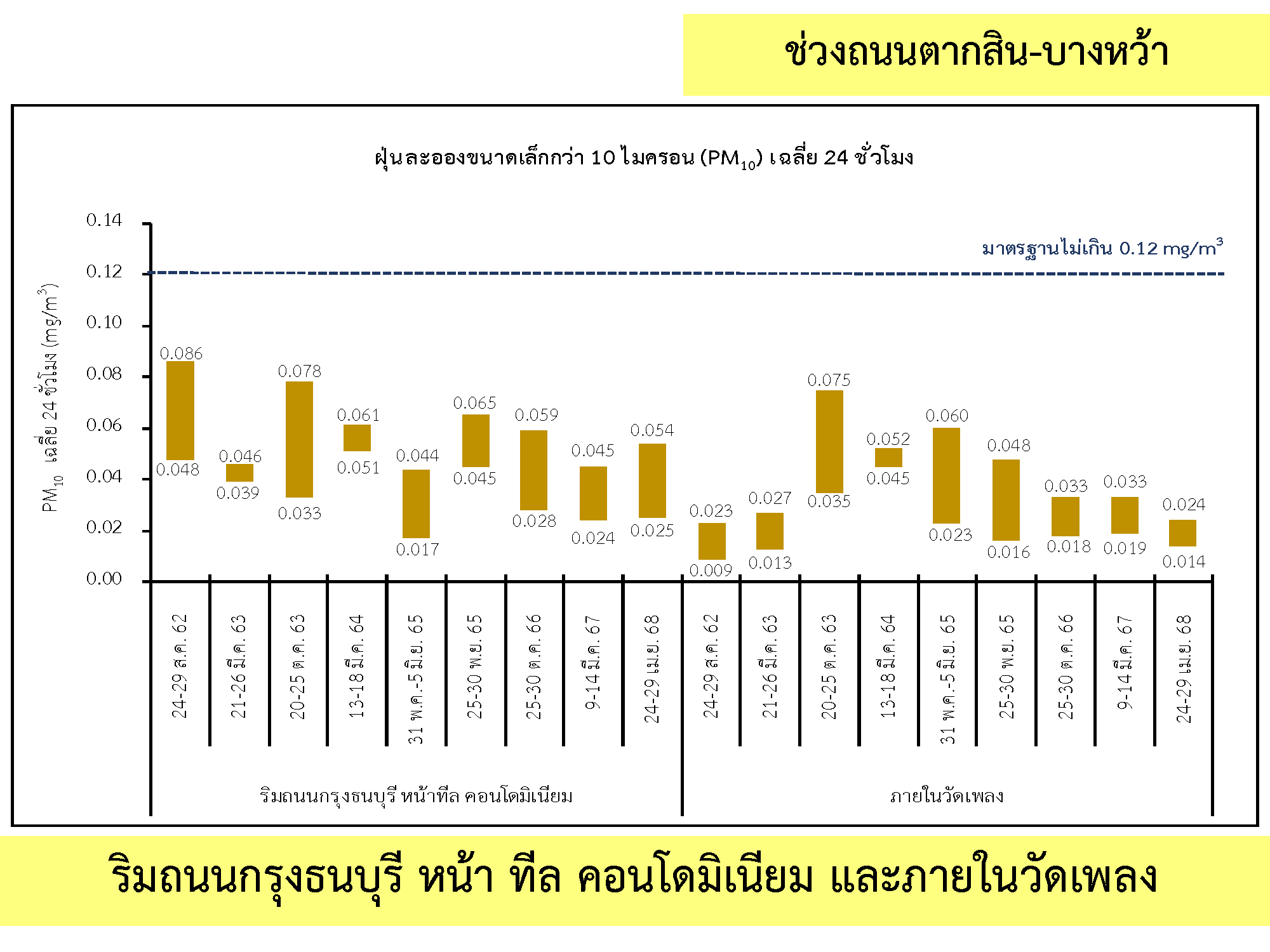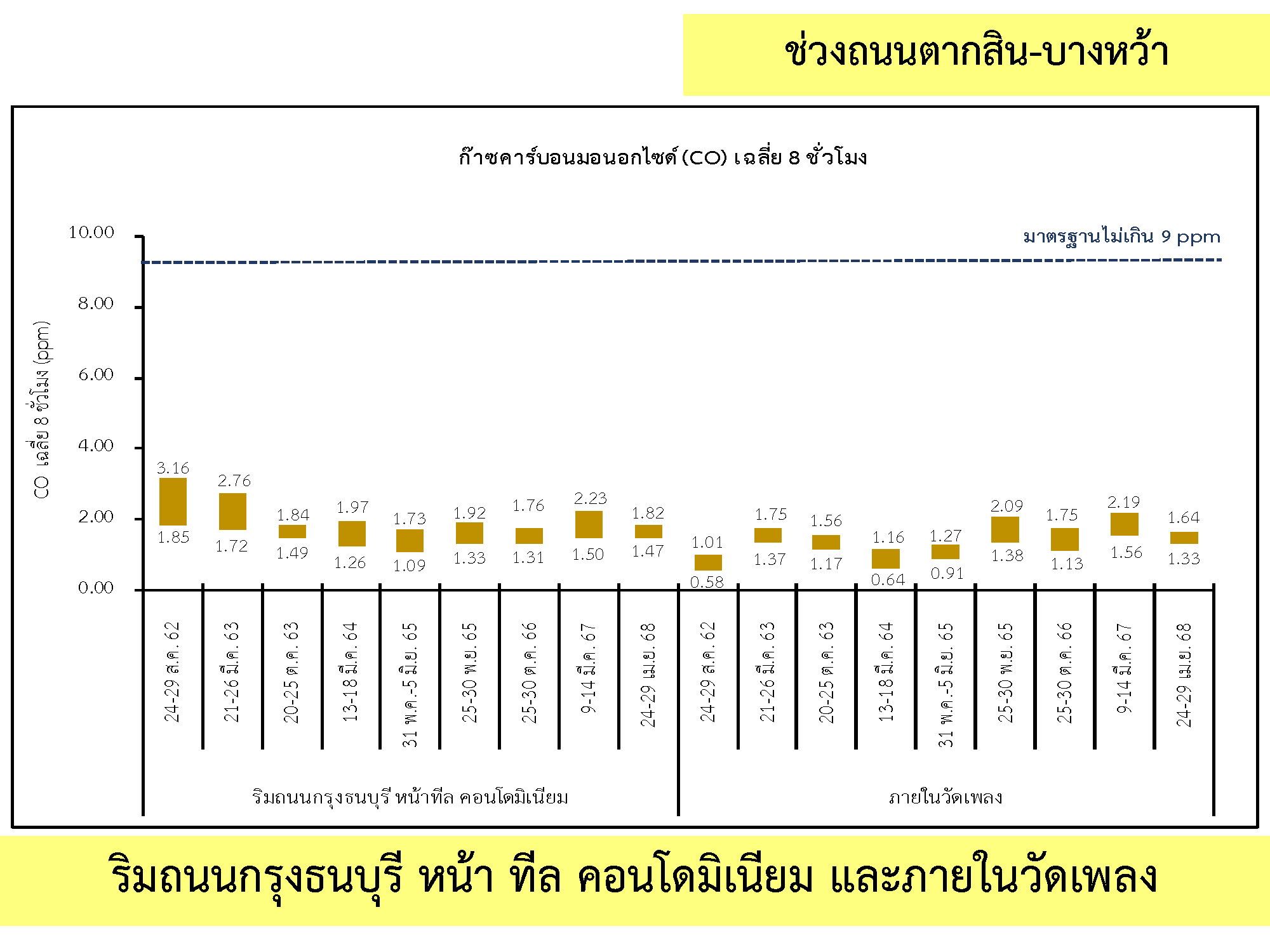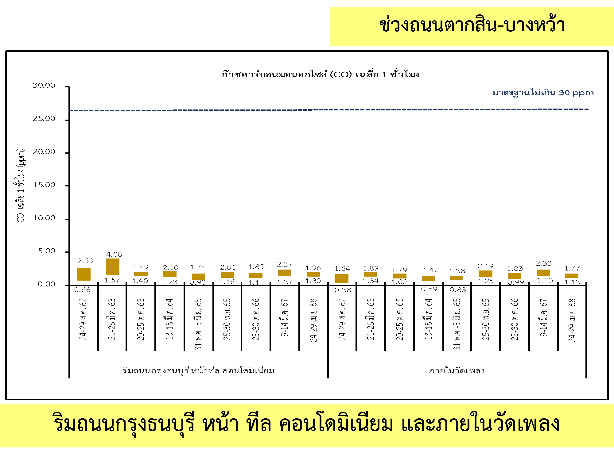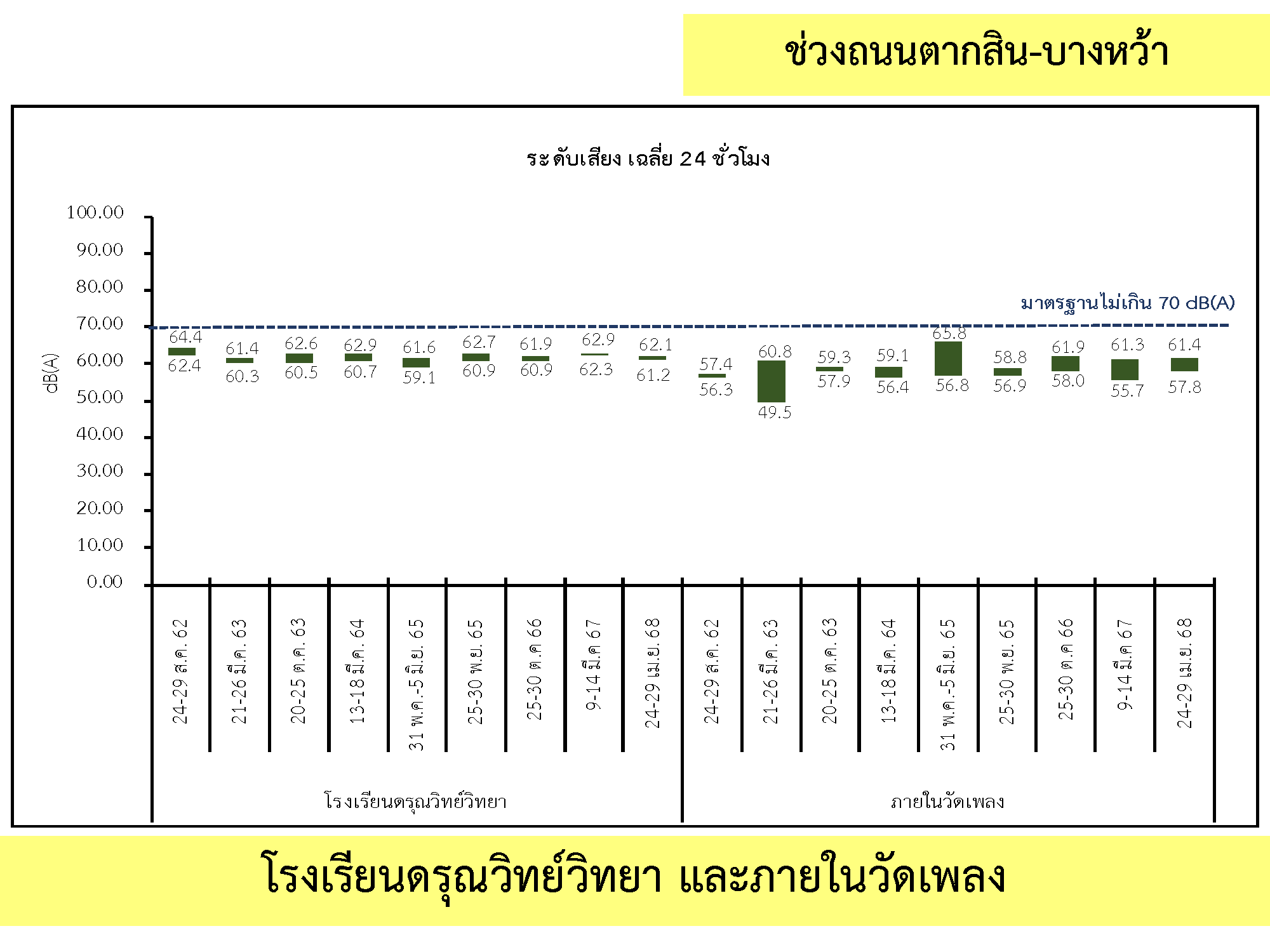โครงการได้ติดตามตรวจสอบผลกระทบสิ่งแวดล้อม ประกอบด้วย คุณภาพอากาศในบรรยากาศ ระดับเสียงโดยทั่วไป และความสั่นสะเทือน จำนวน 2 สถานี ในช่วงมกราคม-มิถุนายน พ.ศ. 2568 ตามข้อกำหนดในรายงานการประเมินผลกระทบสิ่งแวดล้อม โครงการระบบขนส่งมวลชนกรุงเทพมหานคร ส่วนสีลม (ตากสิน-บางหว้า) เป็นประจำทุกปี อย่างน้อยปีละ 2 ครั้ง