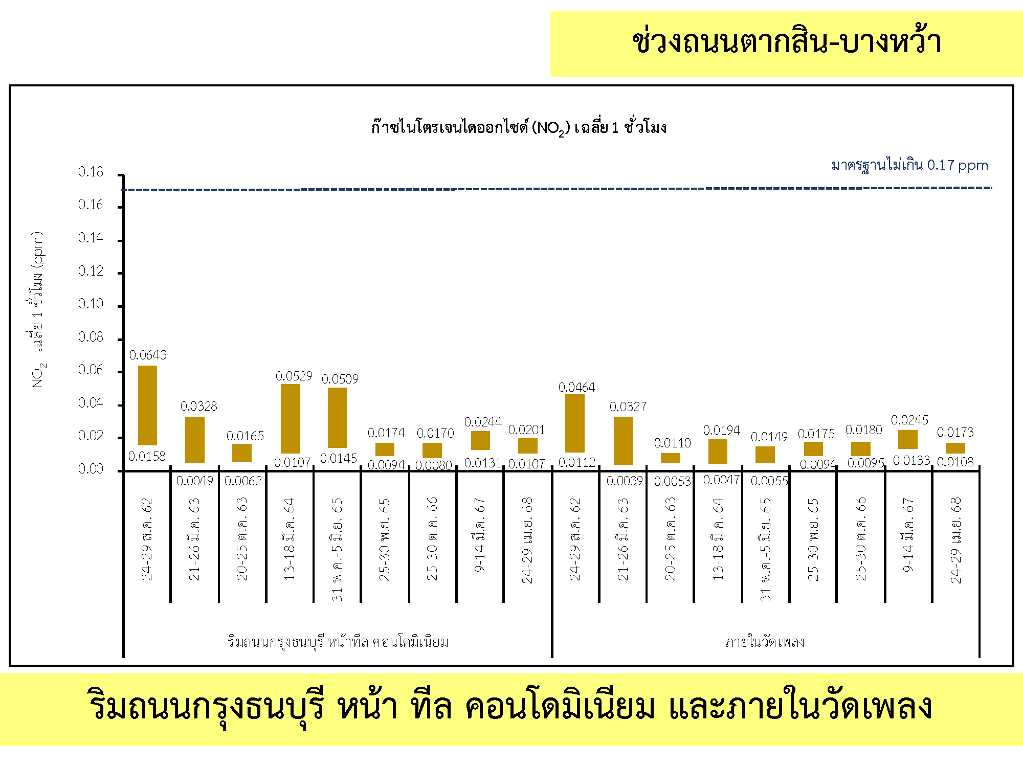 ผลการติดตามตรวจสอบคุณภาพอากาศในบรรยากาศ ได้แก่ ฝุ่นละอองขนาดไม่เกิน 10 ไมครอน ก๊าซคาร์บอนมอนอกไซด์ และก๊าซไนโตรเจนไดออกไซด์ ในช่วงมกราคม-มิถุนายน พ.ศ. 2568 พบว่า ดัชนีคุณภาพอากาศทั้งหมด มีค่าอยู่ในมาตรฐานกำหนดตามประกาศคณะกรรมการสิ่งแวดล้อมแห่งชาติ ฉบับที่ 24 (พ.ศ.2547) เรื่อง กำหนดมาตรฐานคุณภาพอากาศในบรรยากาศโดยทั่วไป ประกาศคณะกรรมการสิ่งแวดล้อมแห่งชาติ ฉบับที่ 10 (พ.ศ. 2538) เรื่อง กำหนดมาตรฐานคุณภาพอากาศในบรรยากาศทั่วไป และประกาศคณะกรรมการสิ่งแวดล้อมแห่งชาติ ฉบับที่ 33 (พ.ศ. 2552) เรื่อง กำหนดมาตรฐานค่าก๊าซไนโตรเจนไดออกไซด์ในบรรยากาศโดยทั่วไป