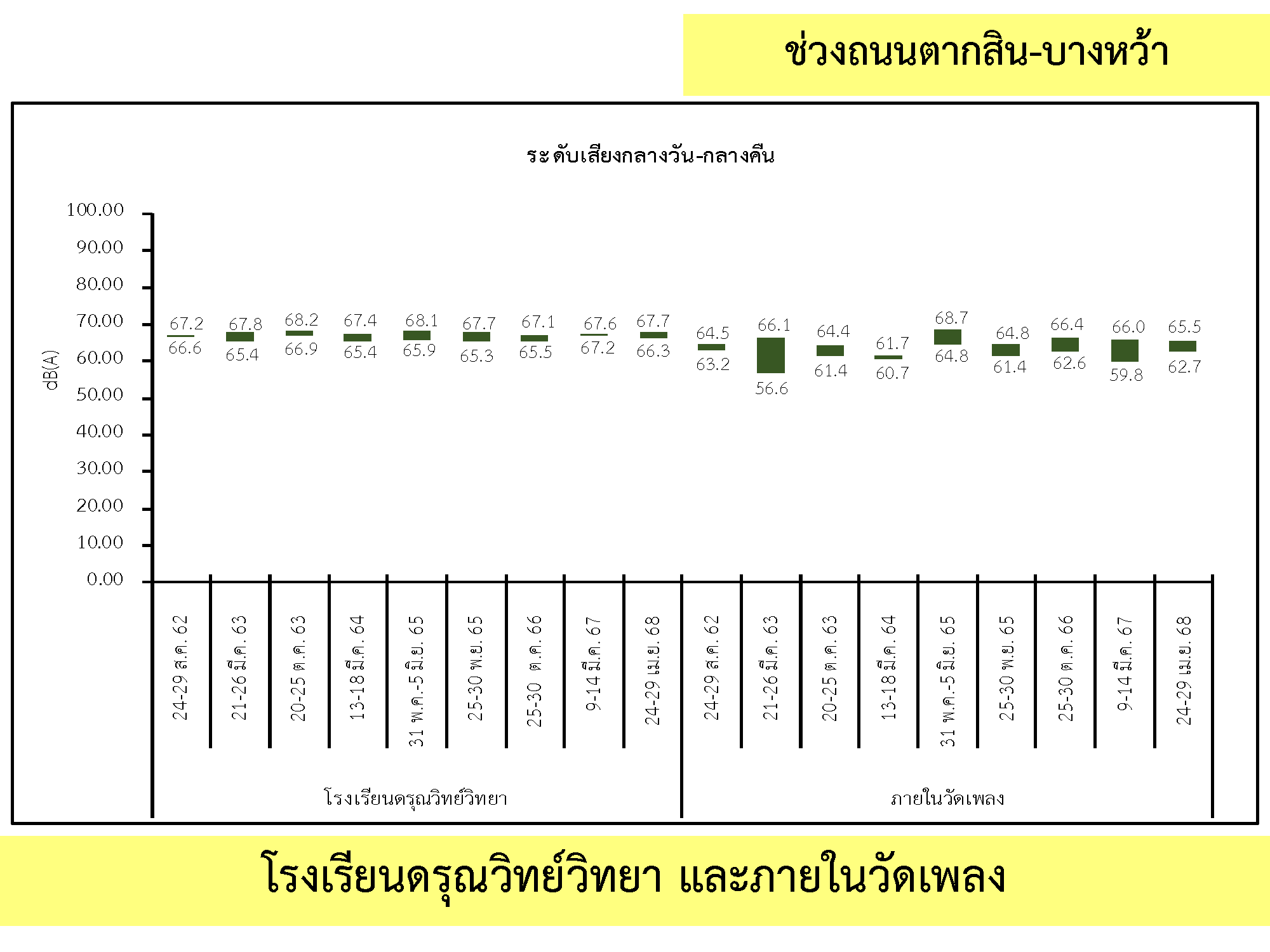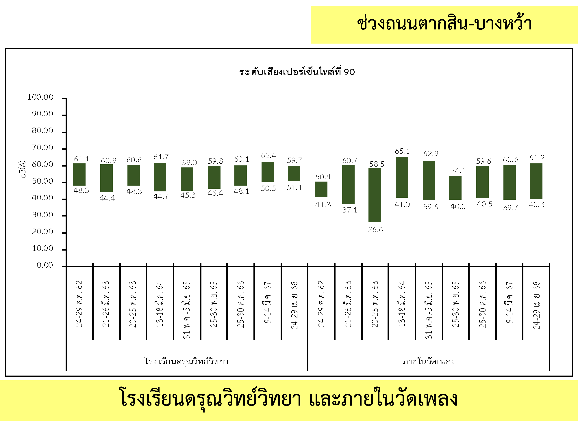 ผลการติดตามตรวจสอบระดับเสียงโดยทั่วไป ได้แก่ ระดับเสียงเฉลี่ย 1 ชั่วโมง ระดับเสียงเฉลี่ย 24 ชั่วโมง ระดับเสียงเปอร์เซ็นไทล์ที่ 90 และระดับเสียงเฉลี่ยกลางวัน-กลางคืน ในช่วงมกราคม-มิถุนายน พ.ศ. 2568 พบว่า ระดับเสียงเฉลี่ย 24 ชั่วโมง ทั้งหมดมีค่าอยู่ในมาตรฐานกำหนดตามประกาศคณะกรรมการสิ่งแวดล้อมแห่งชาติ ฉบับที่ 15 (พ.ศ. 2540) เรื่อง กำหนดมาตรฐานระดับเสียงโดยทั่วไป