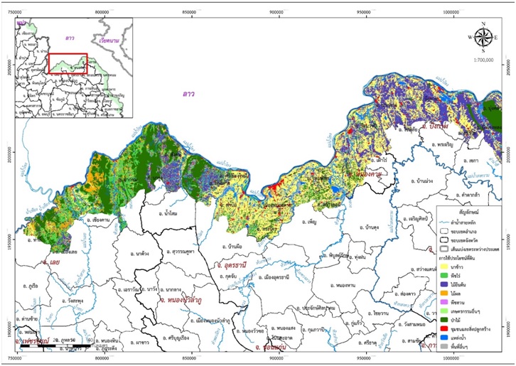 การใช้ประโยชน์ที่ดินของพื้นที่ศึกษา ที่อยู่ในพื้นที่ลุ่มน้ำโขง (เหนือ)