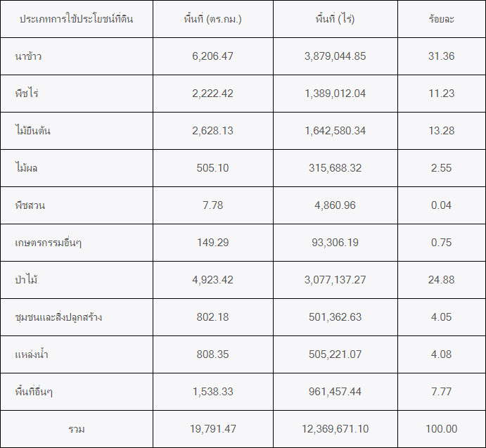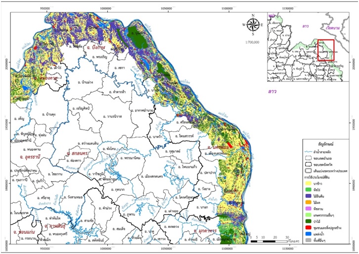 การใช้ประโยชน์ที่ดินของพื้นที่ศึกษา ที่อยู่ในพื้นที่ลุ่มน้ำโขง (ตะวันออกเฉียงเหนือ) บริเวณที่ 2