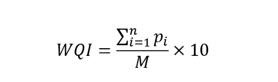 โดย pi คือ ค่าคะแนนของตัวอย่างน้ำในวันที่ i โดยหากค่าของแต่ละพารามิเตอร์อยู่ในเกณฑ์มาตรฐาน จะถือว่ามีค่าถ่วงน้ำหนัก หากไม่อยู่ในเกณฑ์มาตรฐานจะถือว่าค่าคะแนนเป็น 0