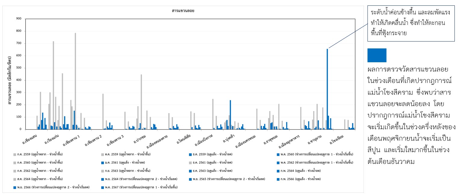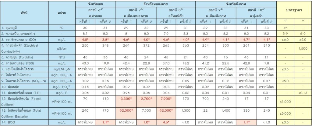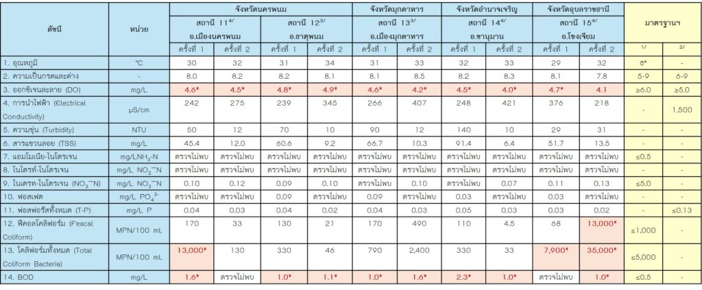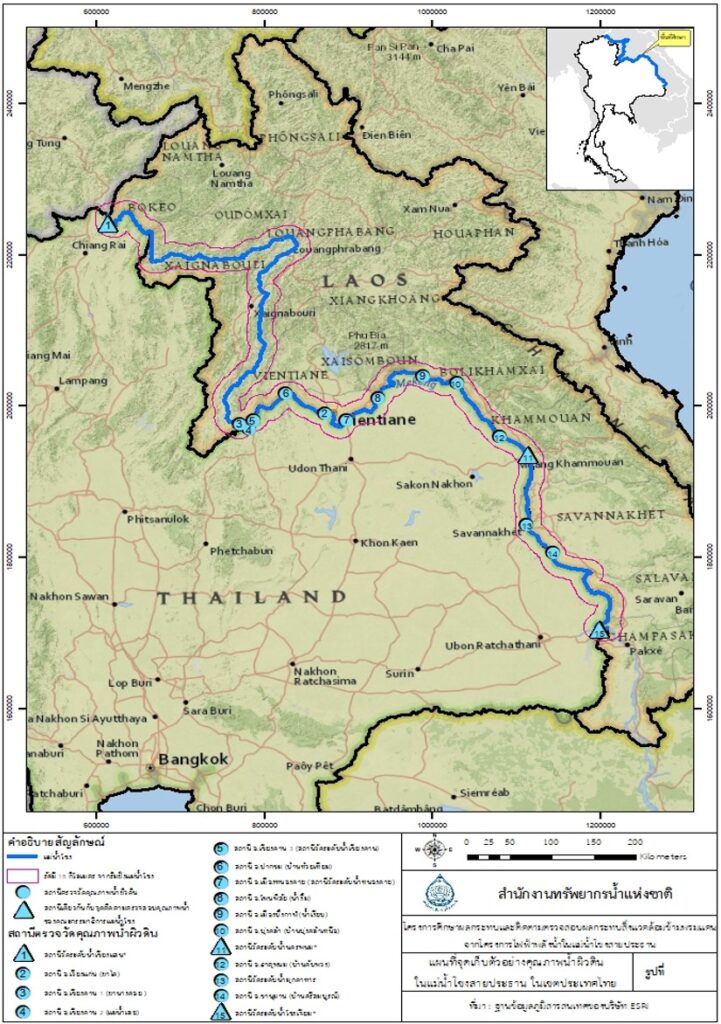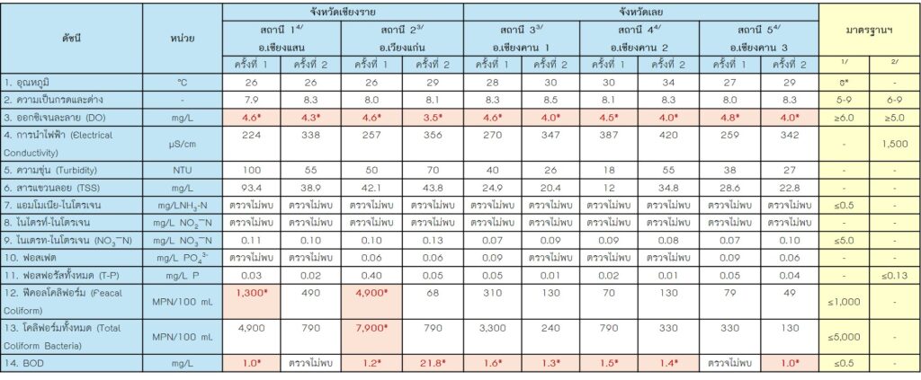 หมายเหตุ: * คือ สถานีเดียวกันกับจุดติดตามตรวจสอบคุณภาพน้ำของคณะกรรมาธิการแม่น้ำโขง