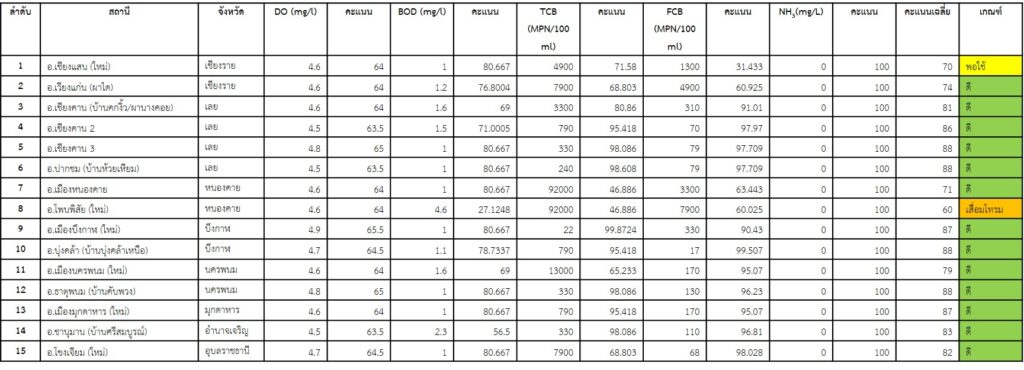 และหลังจากนั้นจะทำการประเมินการจัดระดับชั้นดัชนีคุณภาพน้ำตามตารางด้านล่างนี้