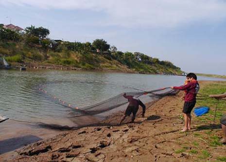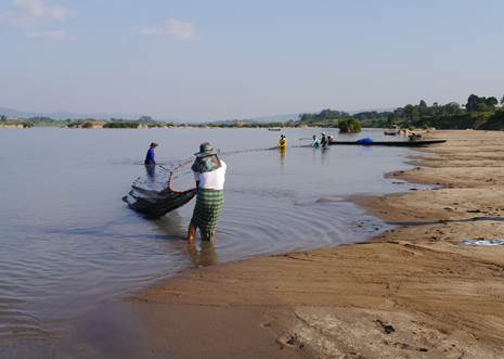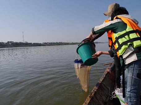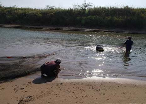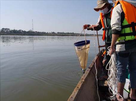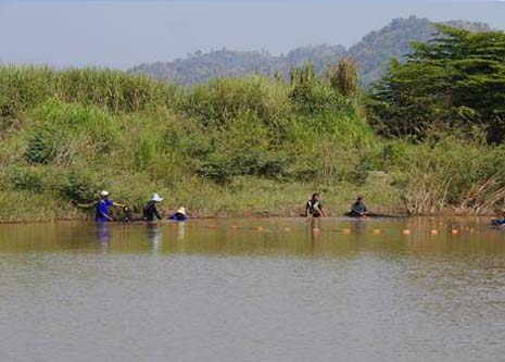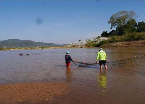 1) การเก็บตัวอย่างสัตว์น้ำโดยเครื่องมืออวนทับตลิ่งและเครื่องมือประมงท้องถิ่น
