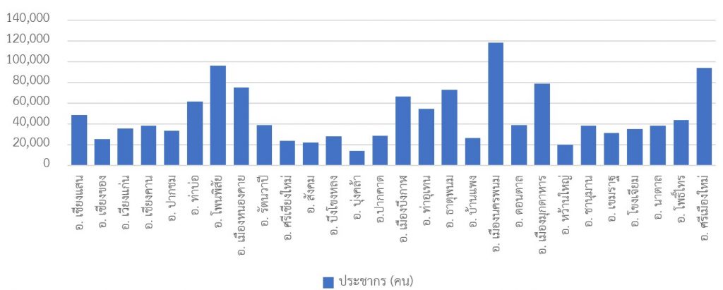 รูปที่ 1 จำนวนประชากรรายอำเภอ พื้นที่ริมแม่น้ำโขงของประเทศไทย