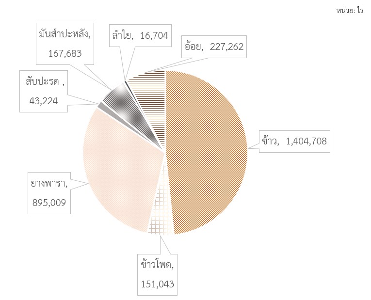 รูปที่ 3 สัดส่วนการใช้ที่ดินเพาะปลูกพืชเศรษฐกิจการเกษตรพื้นที่อำเภอริมแม่น้ำโขง