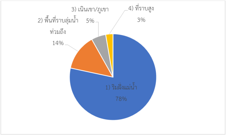 – ด้านรายได้จากการขายผลผลิตทางการเกษตรบนฝั่ง พบว่า ครัวเรือนทั้ง 8 จังหวัดส่วนใหญ่มีรายได้ลดลง จำนวน 173 ครัวเรือน (ร้อยละ 62) โดยจังหวัดที่มีความรุนแรงของปัญหารายได้จากการขายผลผลิตสูงสุด คือ จังหวัดเลยจำนวน 24 ครัวเรือน (ร้อยละ 96)
